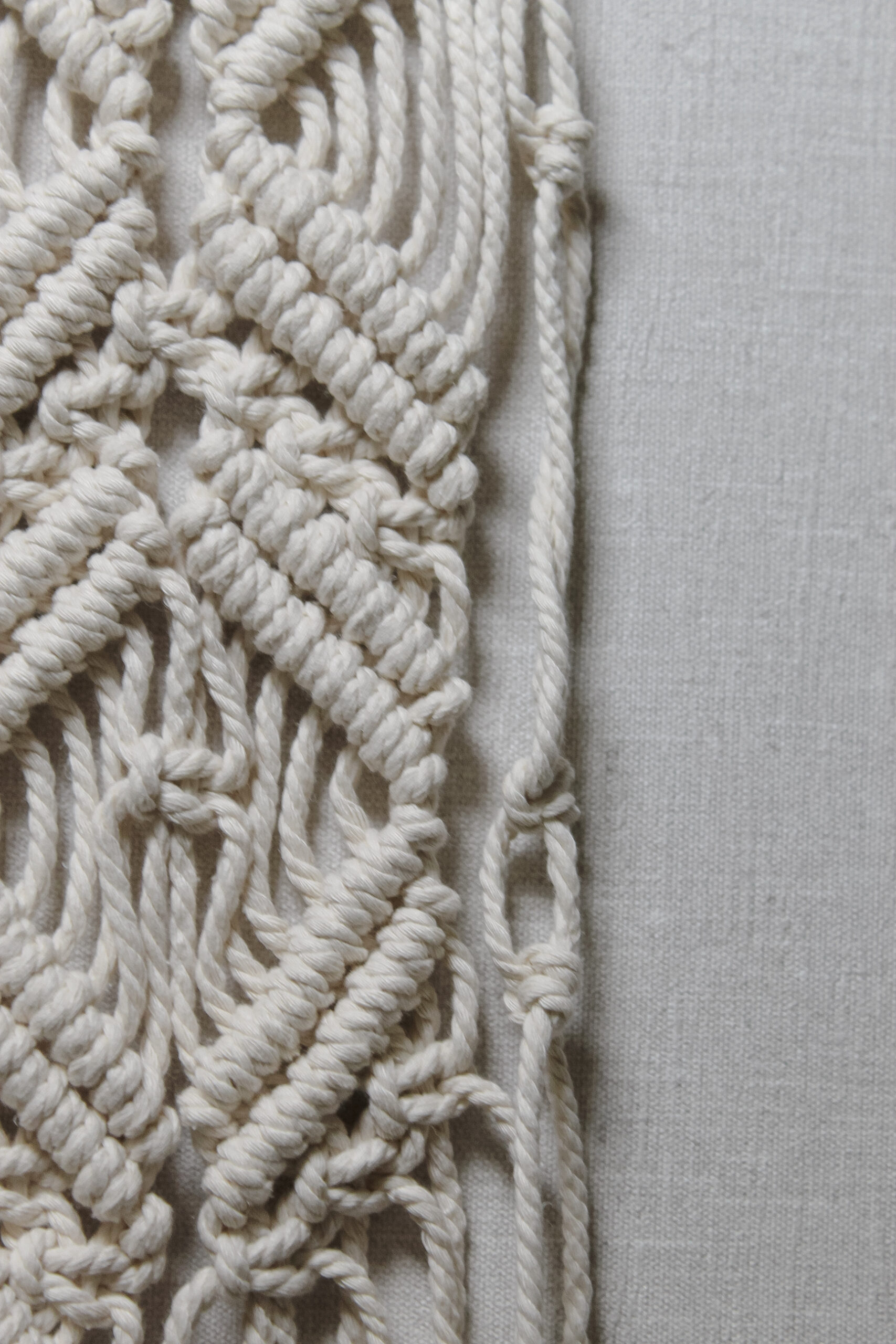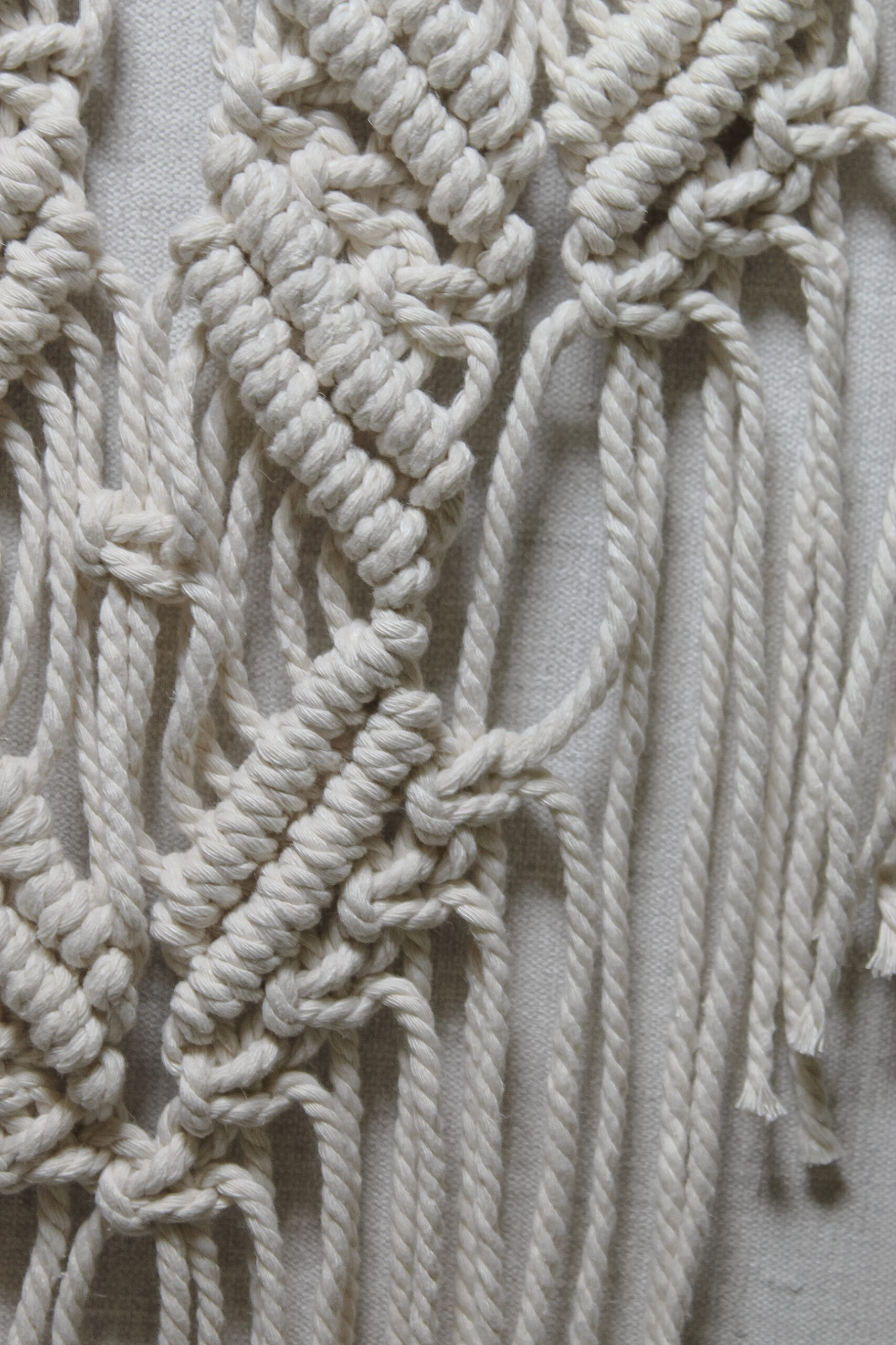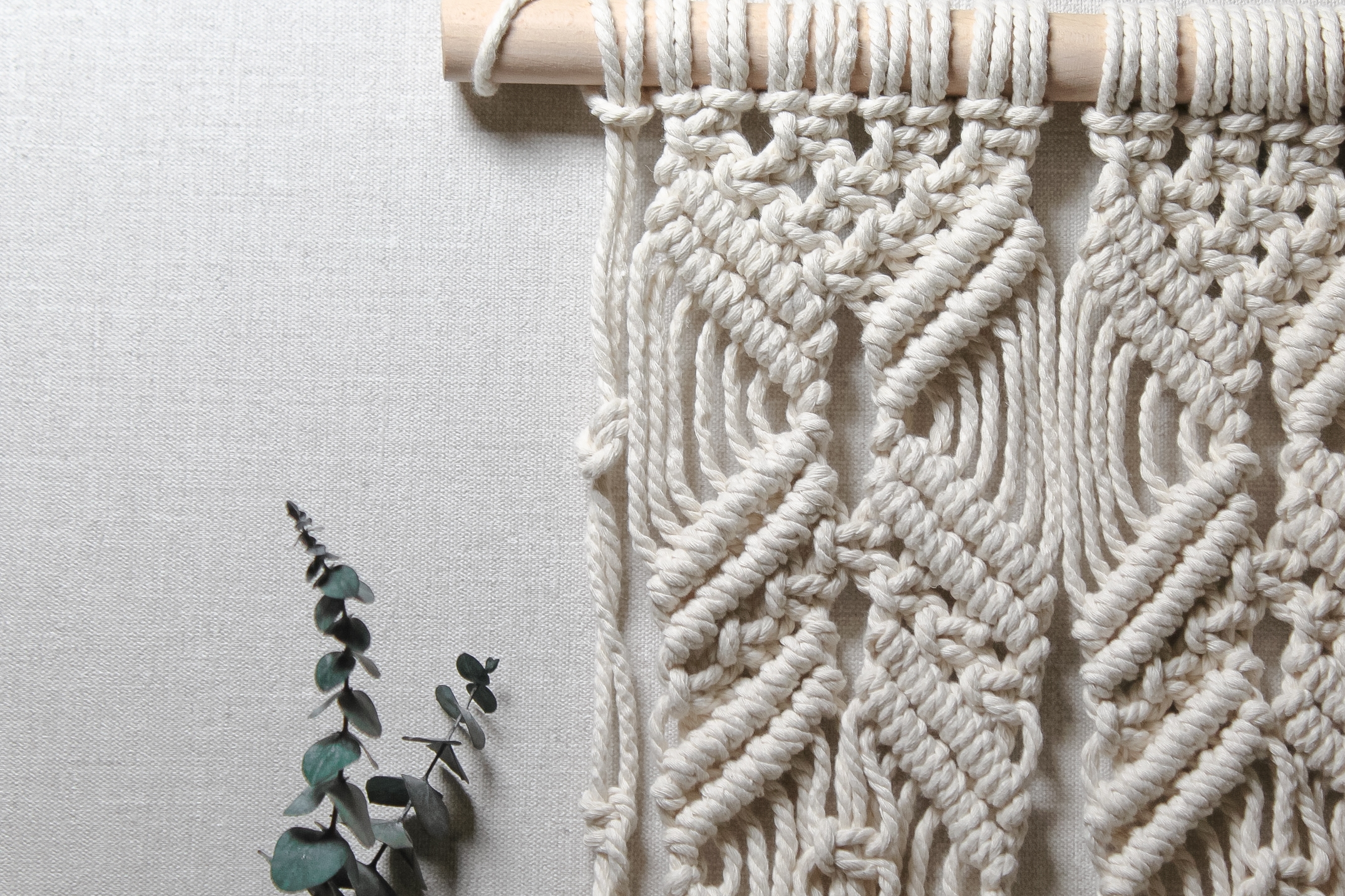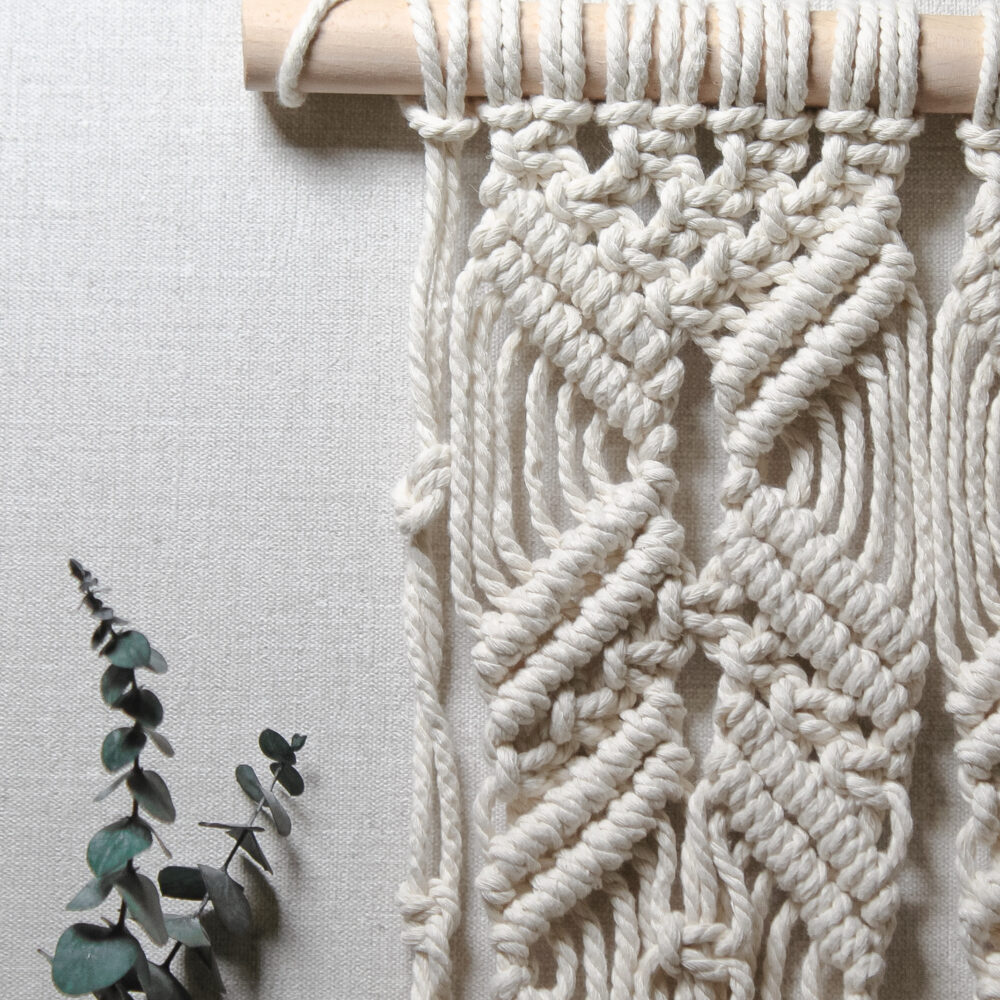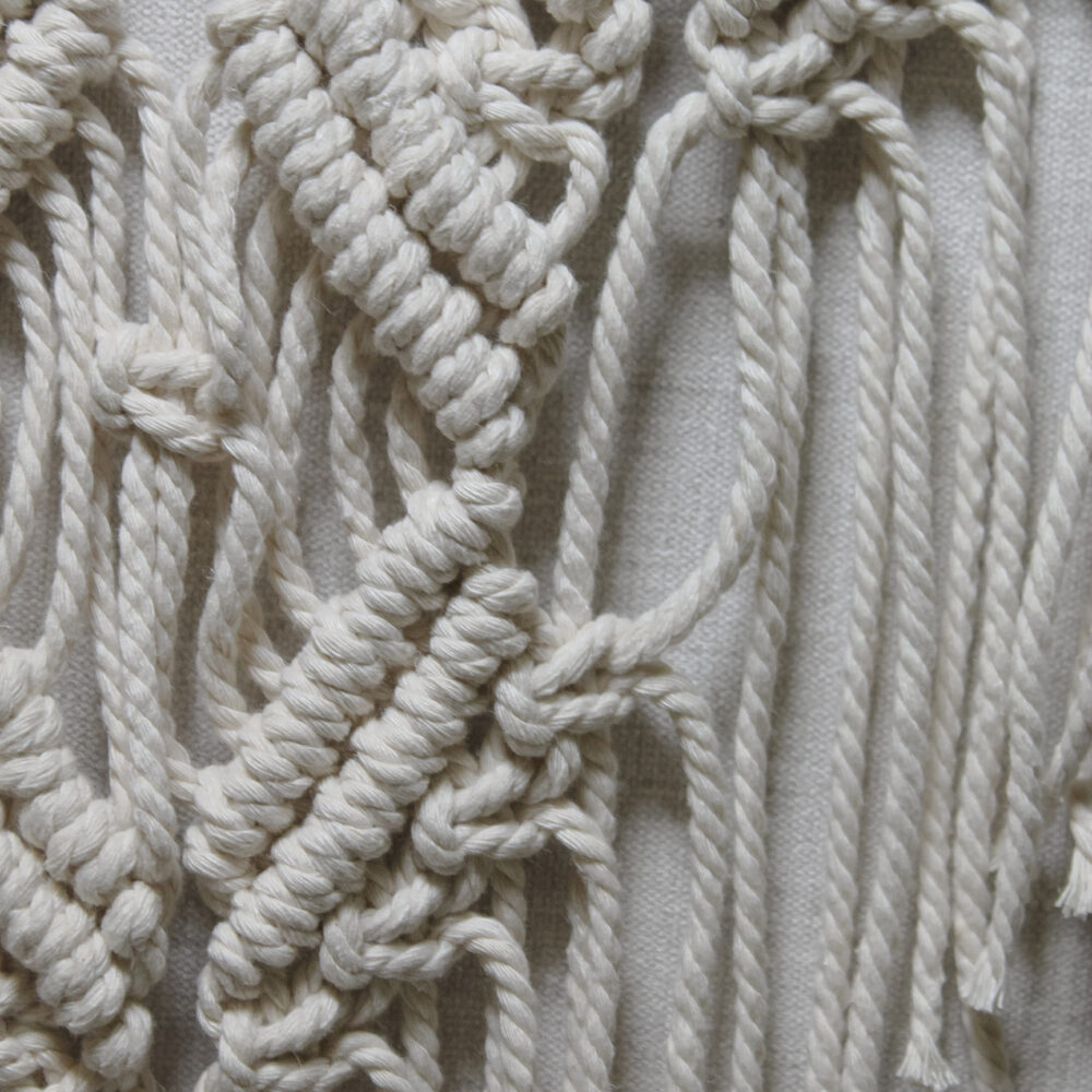 Настінне макраме ручної роботи з натурального бавовняного шнура на дерев’яній гілці. Лаконічне плетіння з довгими шнурами створює спокійний boho-настрій і додає інтер’єру тепла та текстури. Ідеально підходить для спальні, вітальні або затишного куточка для відпочинку.