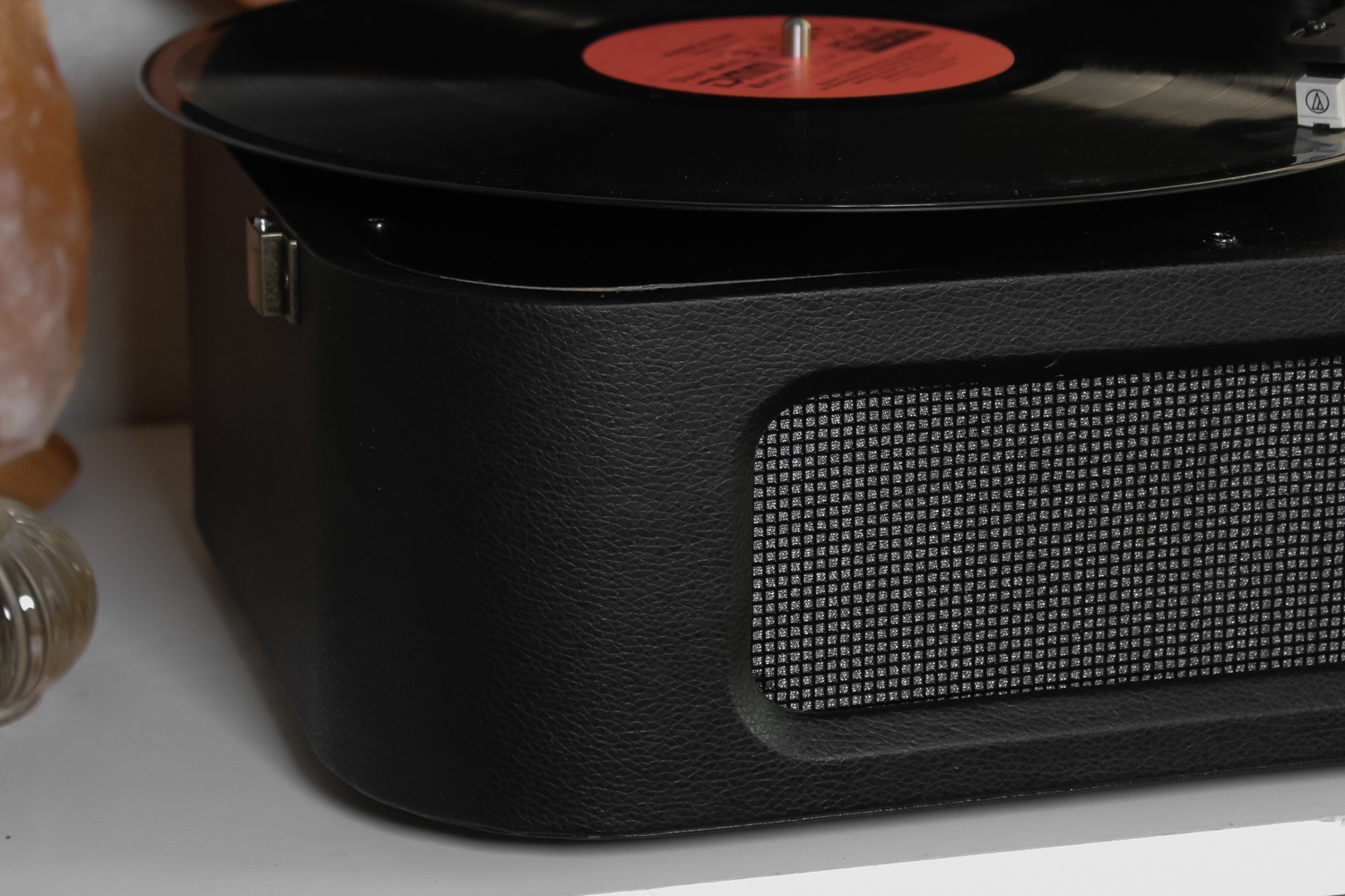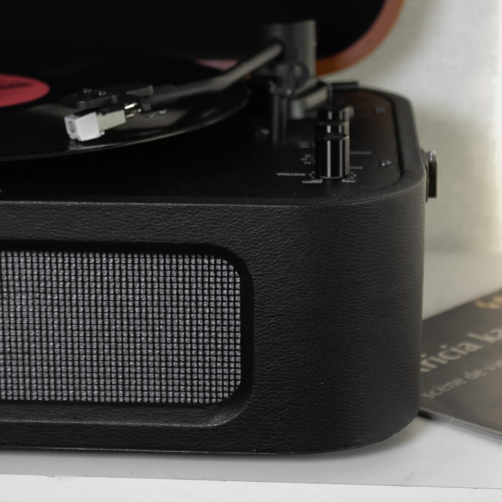 Цей програвач вирізняється серед аналогів завдяки збалансованому тонарму та якісному магнітному звукознімачу Audio-Technica AT3600. На відміну від стандартних моделей із керамічними картриджами та жорстким притиском, тут голка тисне на платівку з оптимальною силою — всього 4 грами, що забезпечує дбайливе відтворення та кращу якість звучання.
