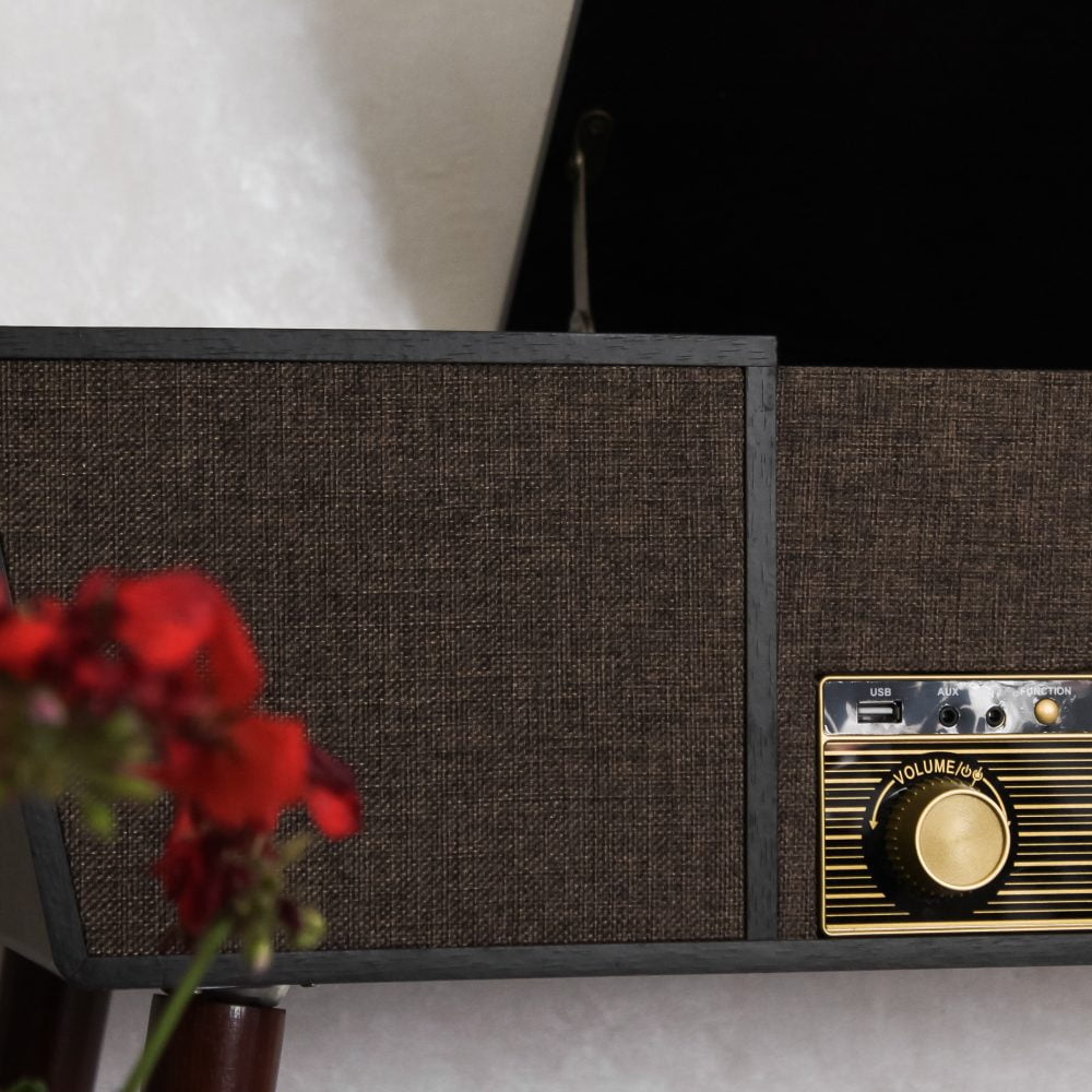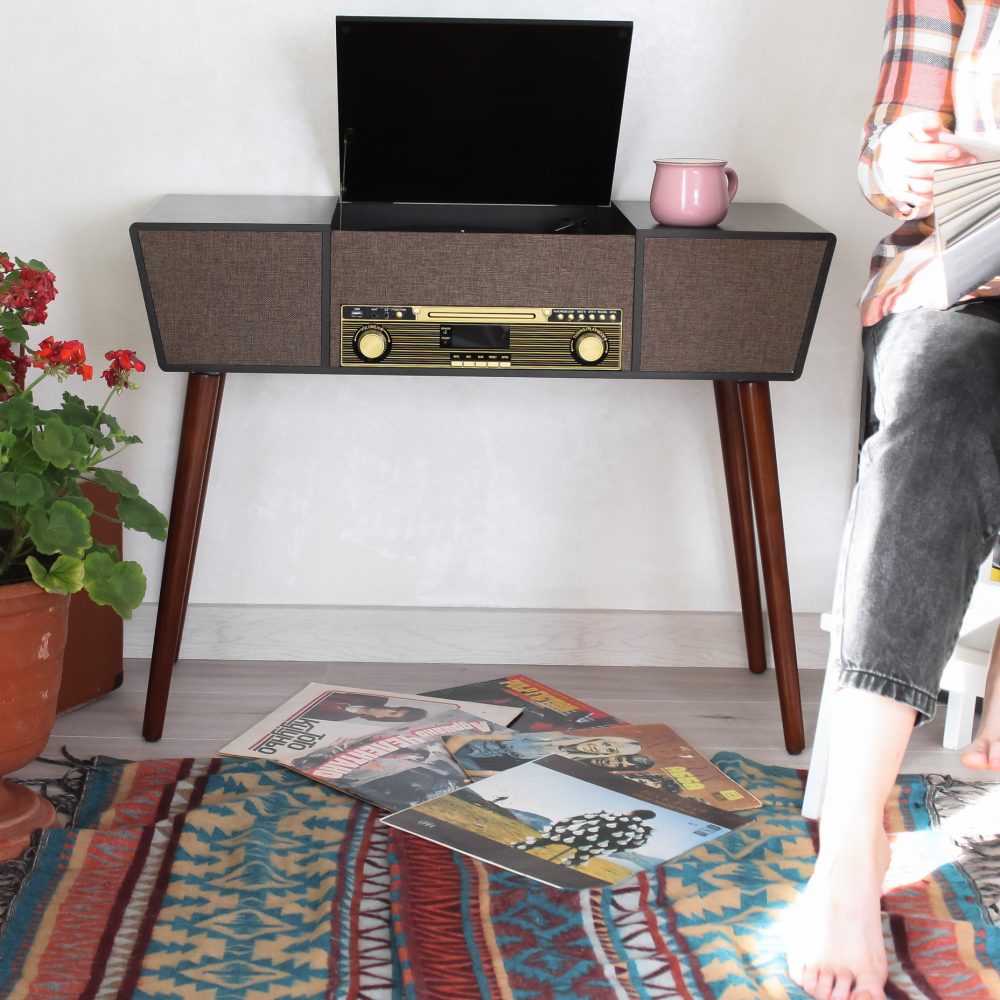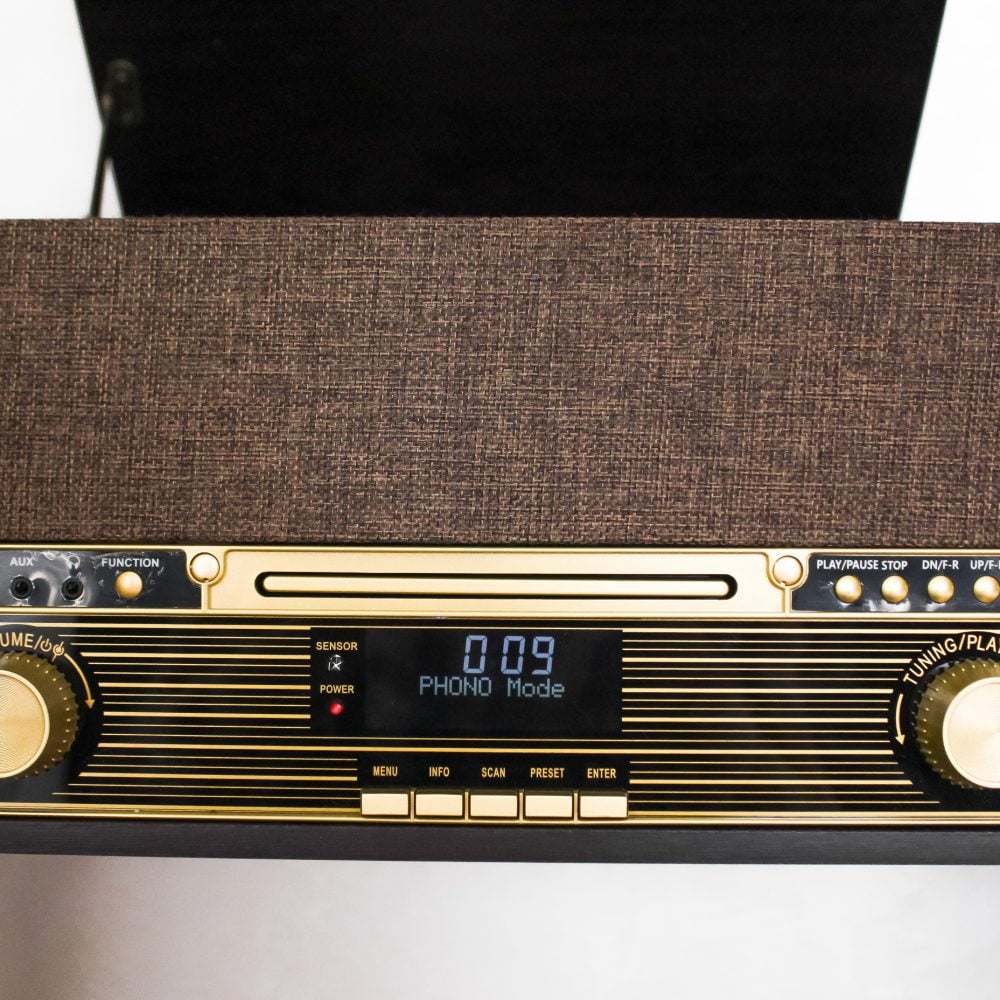 Auna Belle Epoque 1912 – це повноцінний музичний центр з двома дуже потужними вбудованими колонками, який пов’язує минуле з майбутнім. Вінтажний дизайн – корпус з масиву дерева, тканинні динаміки, золота фурнітура… Програвач є абсолютно самостійним предметом інтер’єру.