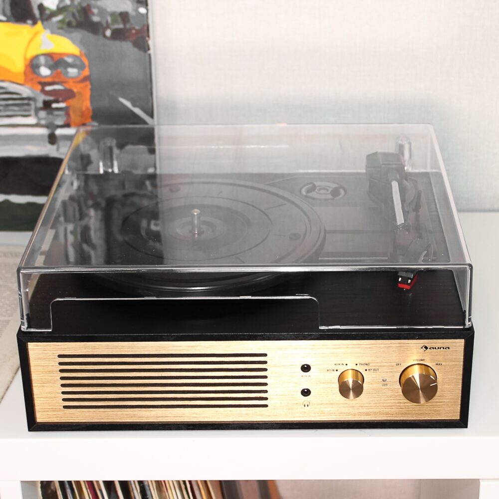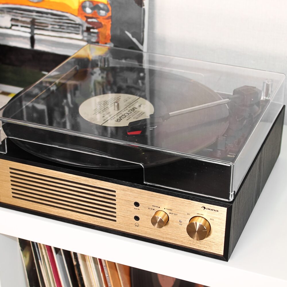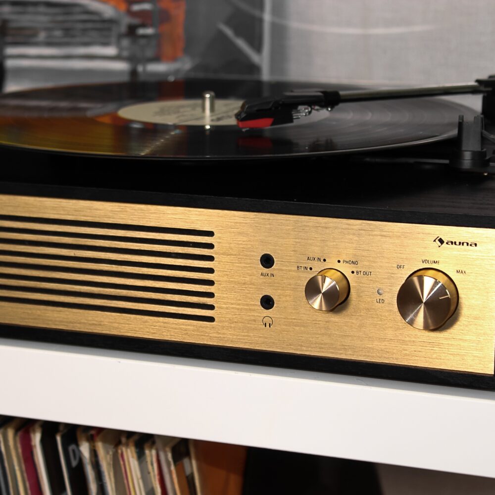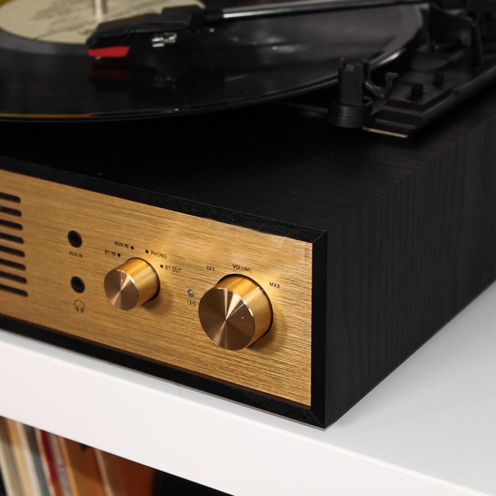 Стереокерамічний звукознімач забезпечує найкращий звук, який легко заповнює кімнату за допомогою потужних вбудованих колонок. Якщо ви не в настрої для вінілу, ви також можете бездротово підключитися до смартфона, планшета або MP3-плеєра через Bluetooth.