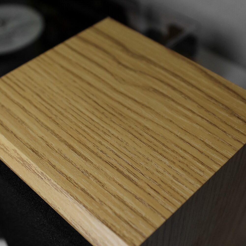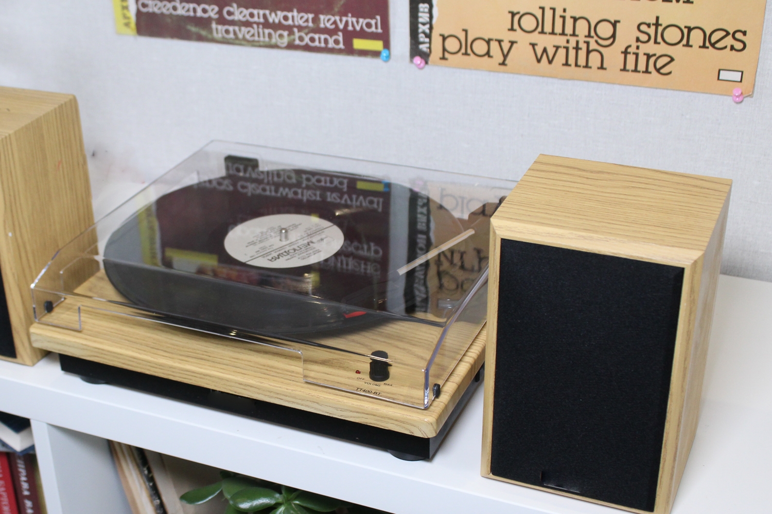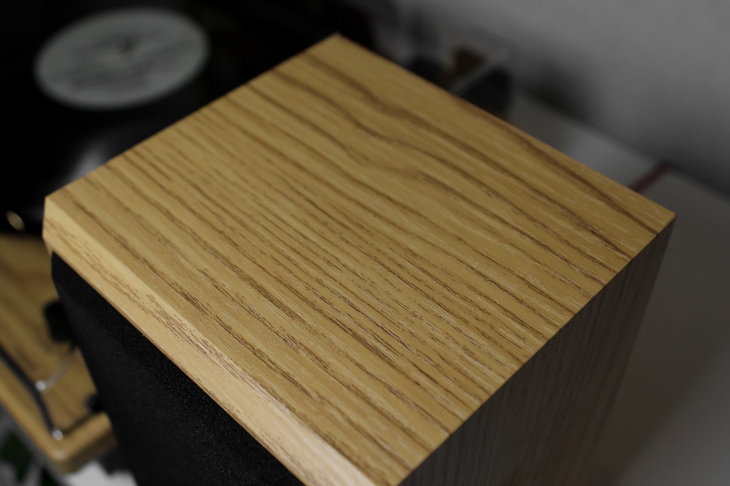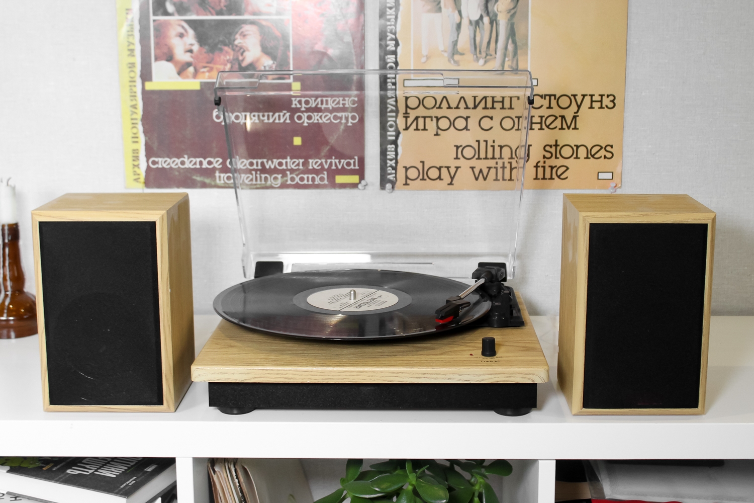 Класична модель програвача в кольорі світле дерево в комплекті з двома потужними динаміками.