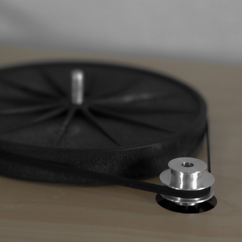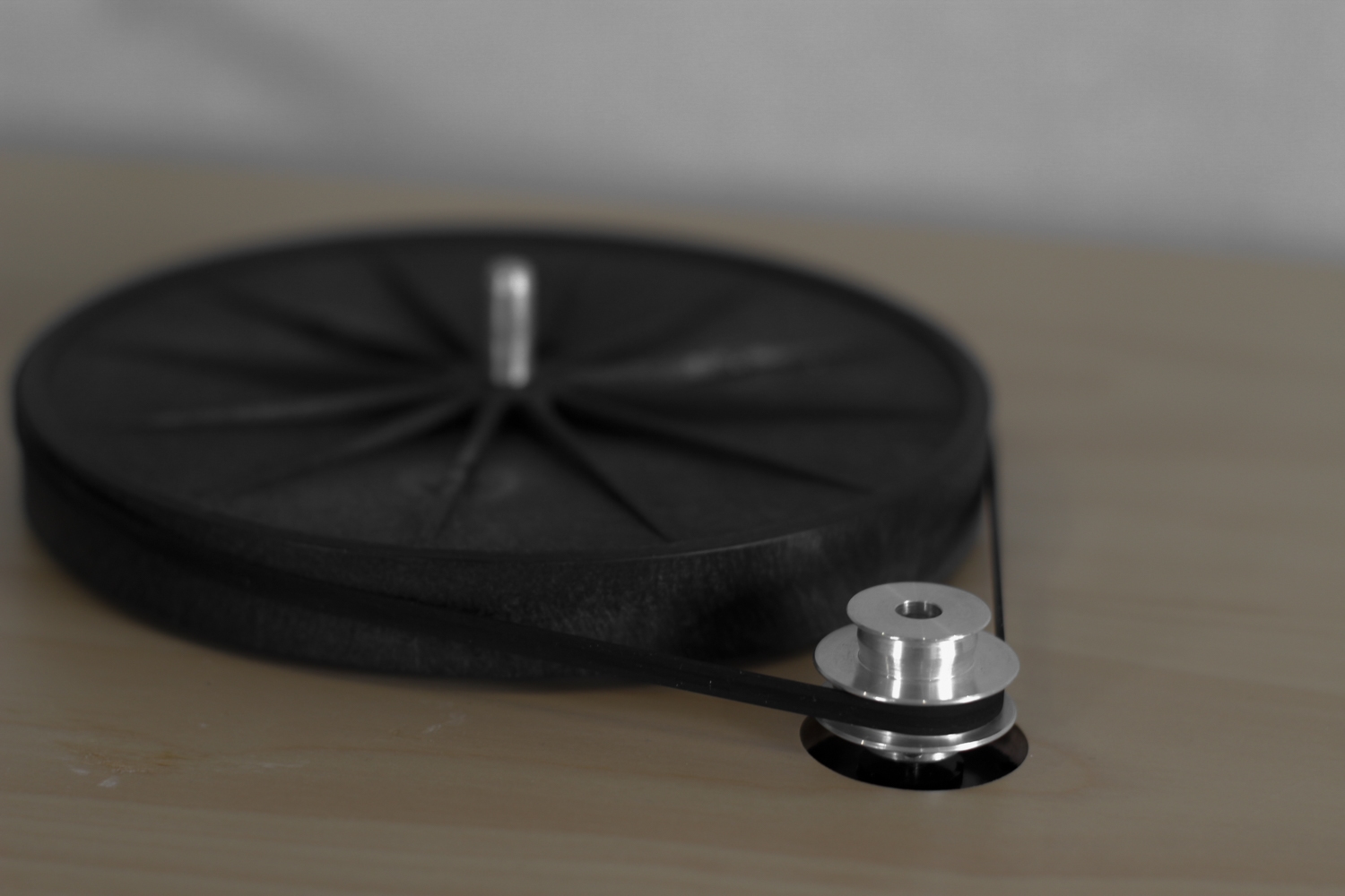• Перемикання швидкостей виконується вручну шляхом переставляння ременя на шківі двигуна: щоб змінити швидкість з 33 1/3 на 45 об/хв або навпаки, достатньо зняти платтер (диск), перенести ремінь на інший рівень шківа — і встановити диск назад. Така механічна система є простою, надійною та сприяє стабільній роботі програвача без електронного втручання у швидкість обертання.
