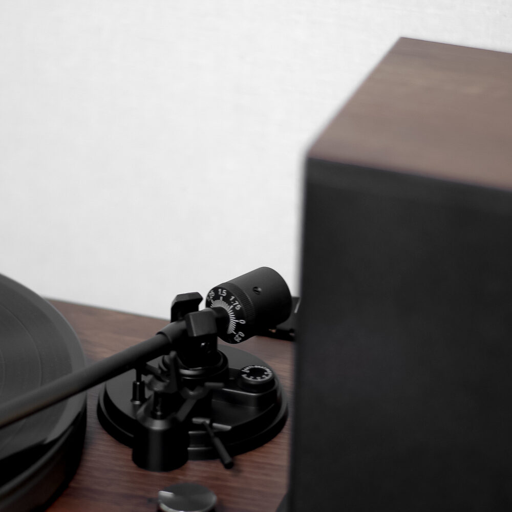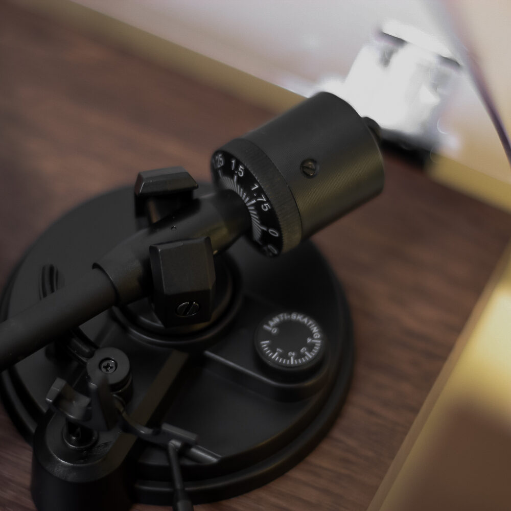 - Важіль натиску тонарму: оптимізує притиск голки до платівки, захищаючи її від пошкоджень і покращуючи якість зчитування звуку