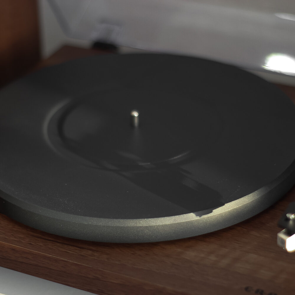 - Повнорозміний обертальний диск: підтримує платівку рівномірно, забезпечуючи точне зчитування та стабільність