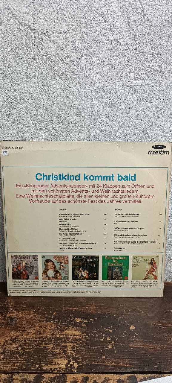 Платівка «Christkind kommt bald» — це різдвяний «звучний адвент-календар» із 24 піснями, які символічно відповідають дням очікування Різдва. Тут зібрані найулюбленіші німецькі та європейські різдвяні колядки, що створюють святкову атмосферу і для дітей, і для дорослих. Теплі голоси та традиційні мелодії дарують справжнє відчуття наближення різдвяного дива.
