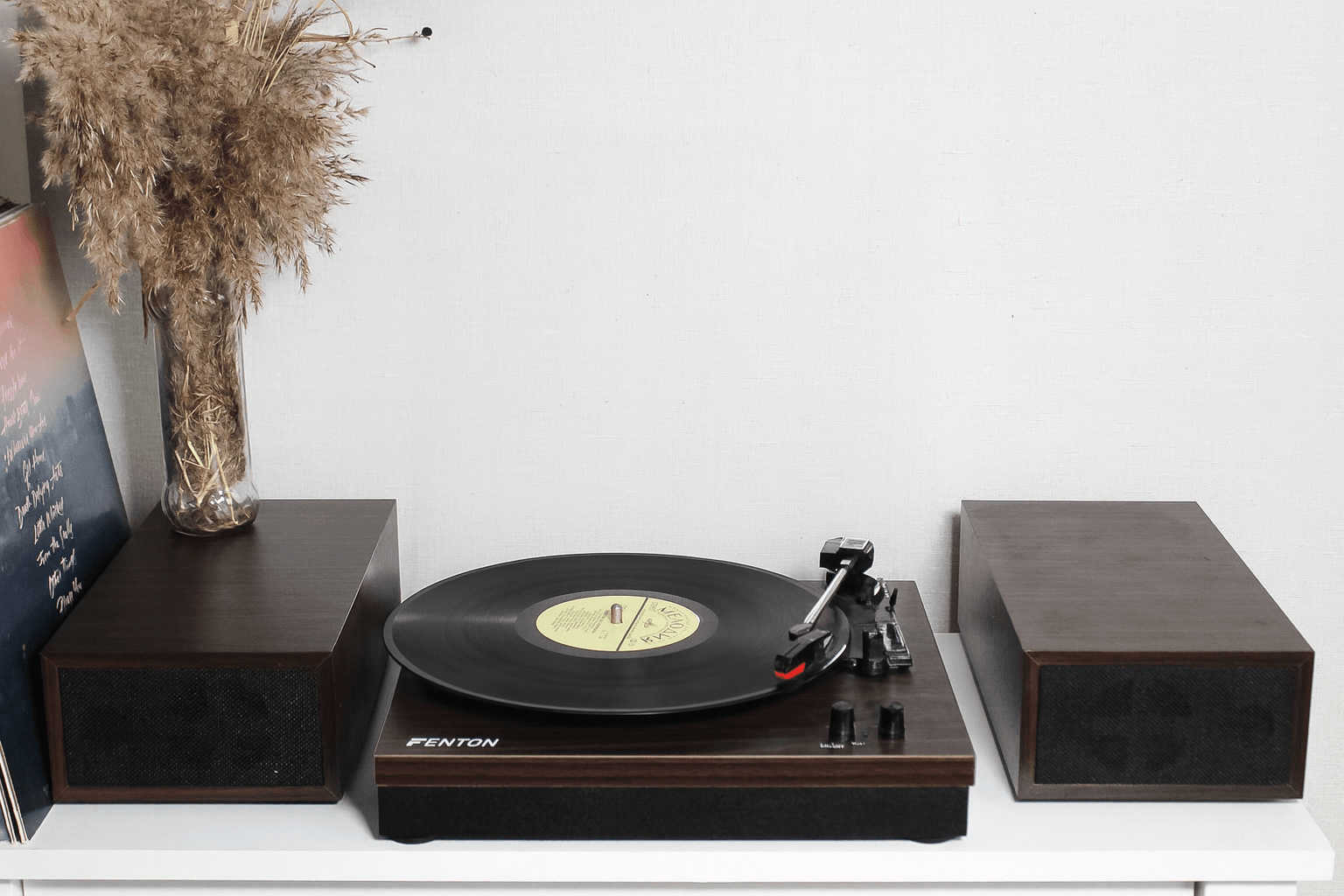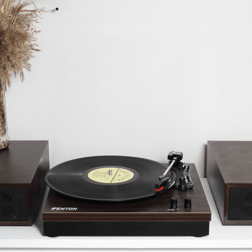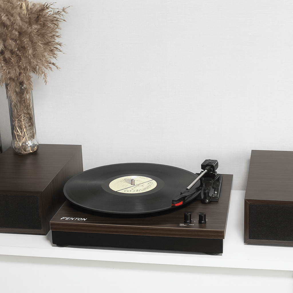 Оновлена версія моделі Fenton в насиченому кольорі. Фонокорректор, підсилювач  вже вбудовані, голка встановлена. Колонки входять в комплект