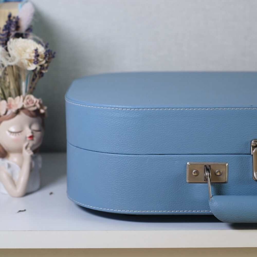 Програвач в ніжному кольорі в корпусі з еко-шкіри, з срібною фурнітурою.