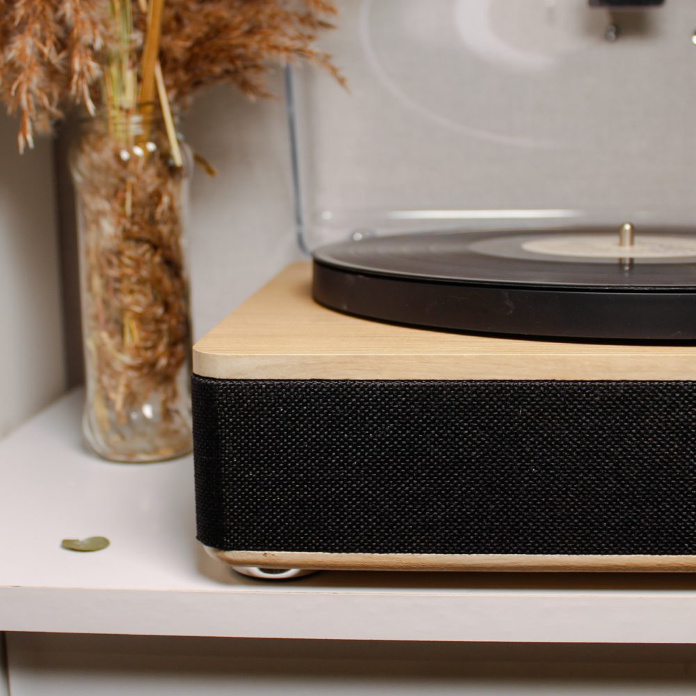 Дерев’яний корпус у поєднанні з тканинними динаміками однозначно привертає увагу!