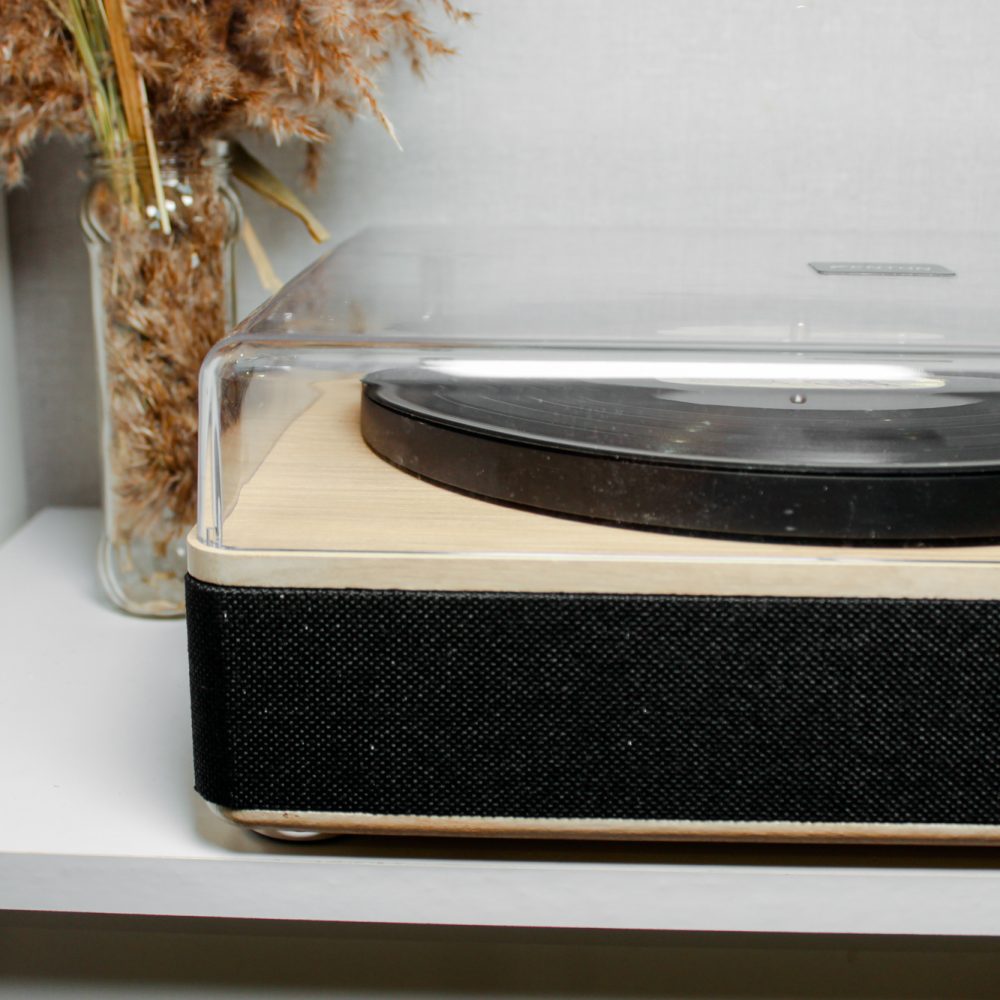 - Оснащений антивібраційною системою: обертальний диск встановлений на спеціальних подушках, що забезпечують плавність роботи та усувають сторонні шуми чи вібрації. Така конструкція гарантує чистий, якісний звук без зайвого гулу, характерного для жорсткого кріплення.