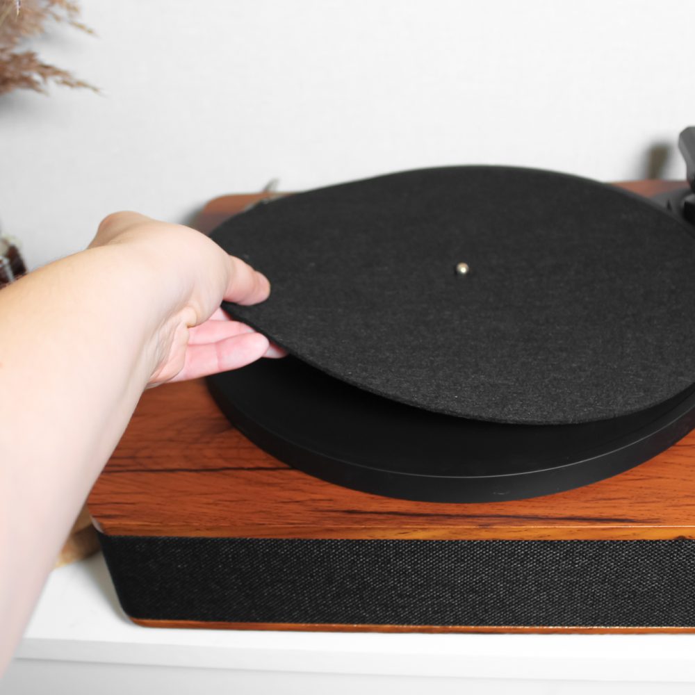 - Оснащений антивібраційною системою: обертальний диск встановлений на спеціальних подушках, що забезпечують плавність роботи та усувають сторонні шуми чи вібрації. Така конструкція гарантує чистий, якісний звук без зайвого гулу, характерного для жорсткого кріплення.