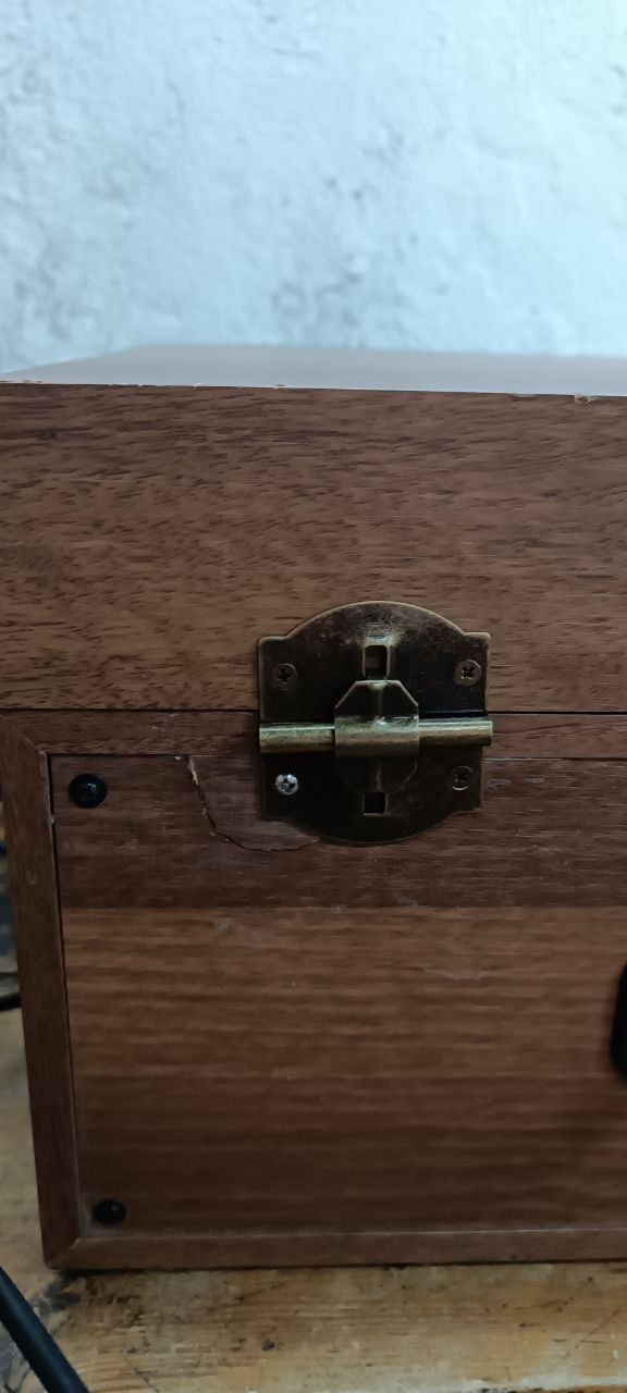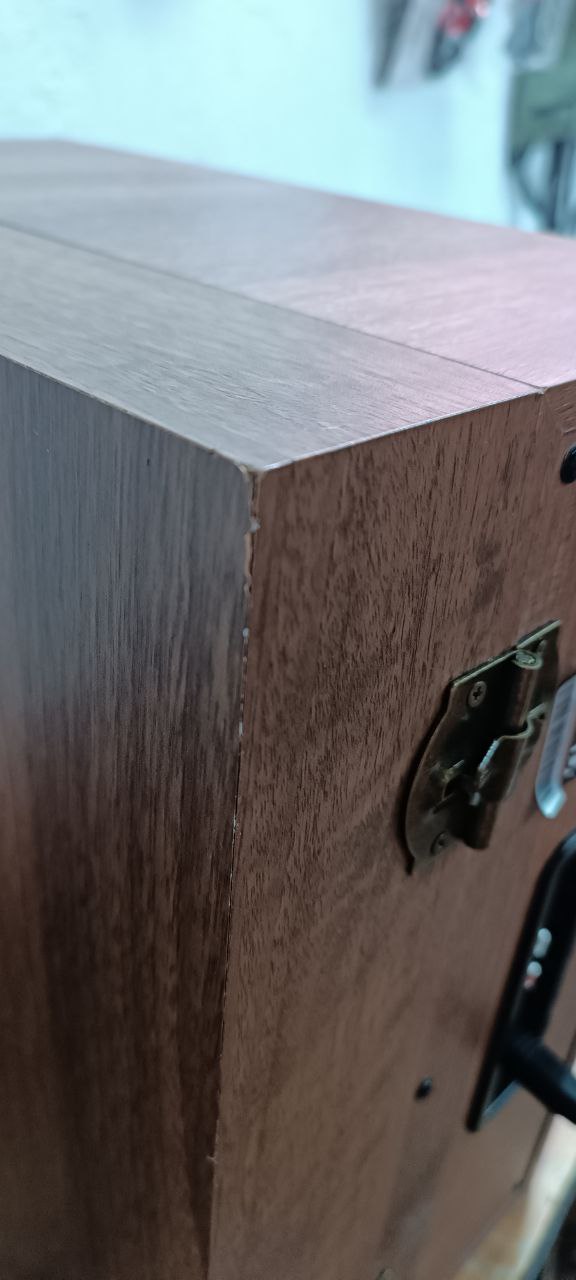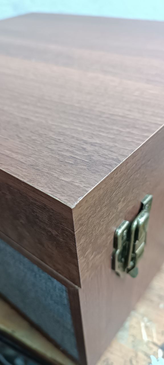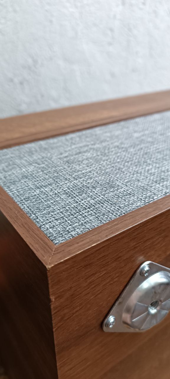 Класичний програвач, корпус стилізований під дерево, тканинні динаміки…