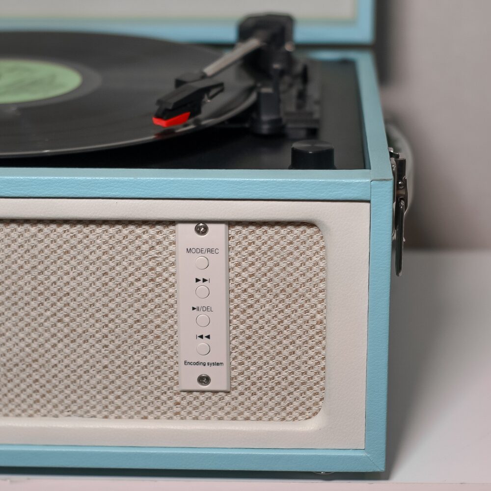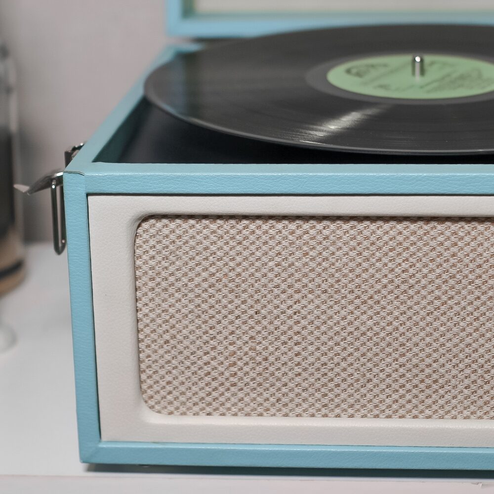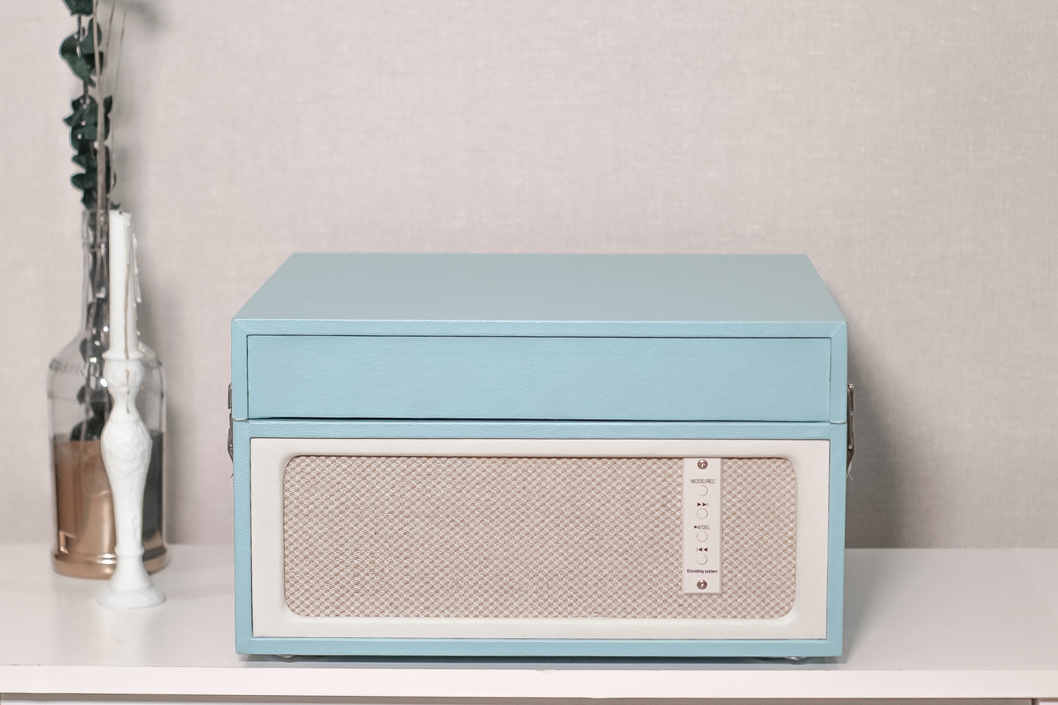 Стереосистема Funk виконана у стилі 1950-х. В компактний корпус вбудовані стереодинаміки, проте якщо ви бажаєте ще більшого звучання є можливість підключення додаткових джерел звуку. Cправжні вінтаж – стане центром вашої уваги. Програвач у ніжному кольорі, корпус виконано з еко-шкіри.