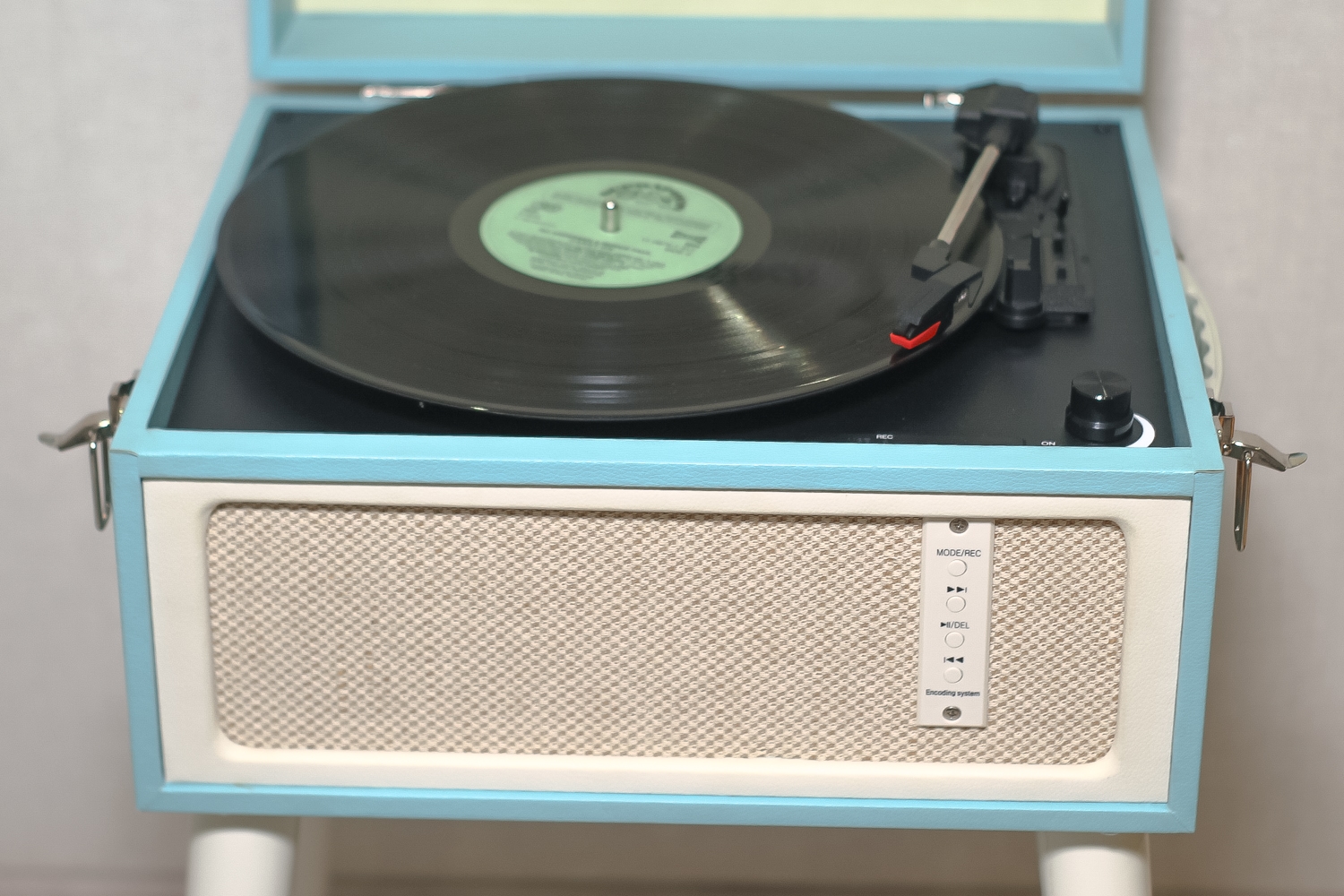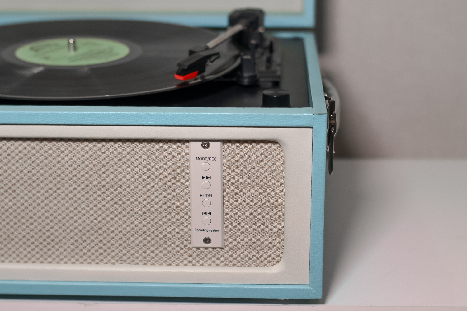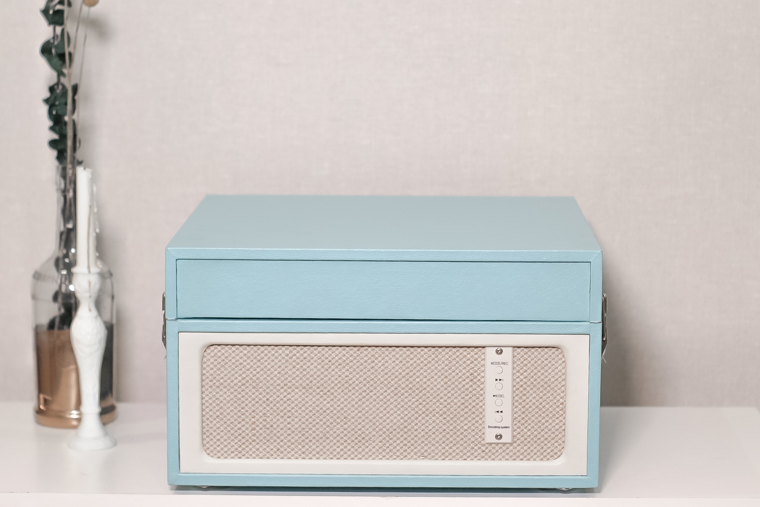 Стереосистема Funk виконана у стилі 1950-х. В компактний корпус вбудовані стереодинаміки, проте якщо ви бажаєте ще більшого звучання є можливість підключення додаткових джерел звуку. Cправжні вінтаж – стане центром вашої уваги. Програвач у ніжному кольорі, корпус виконано з еко-шкіри.
