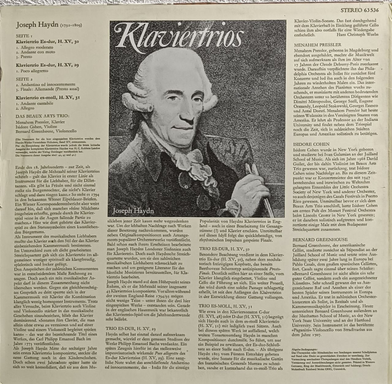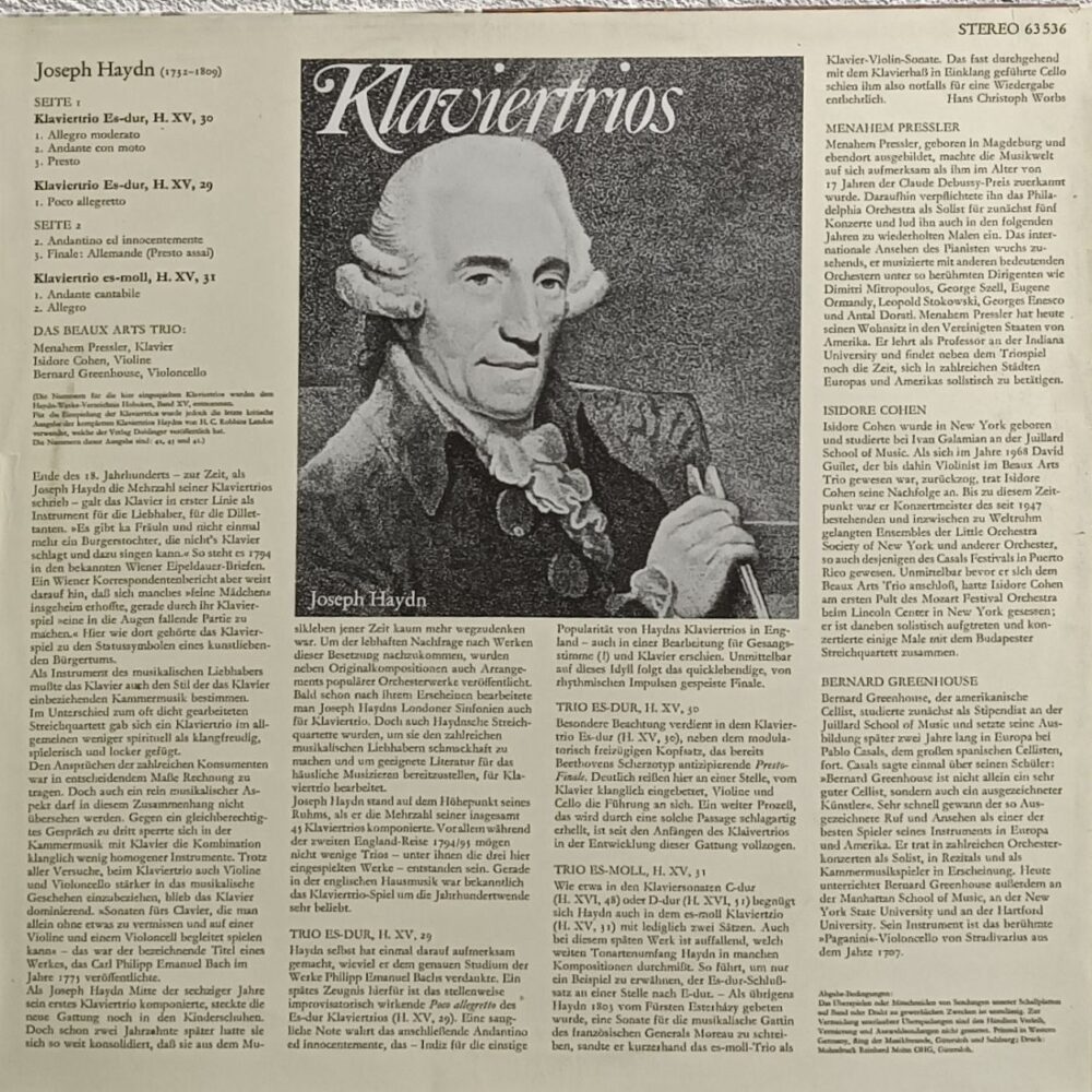 Камерна класика від Joseph Haydn у виконанні легендарного ансамблю Beaux Arts Trio — один із найсильніших складів у жанрі.