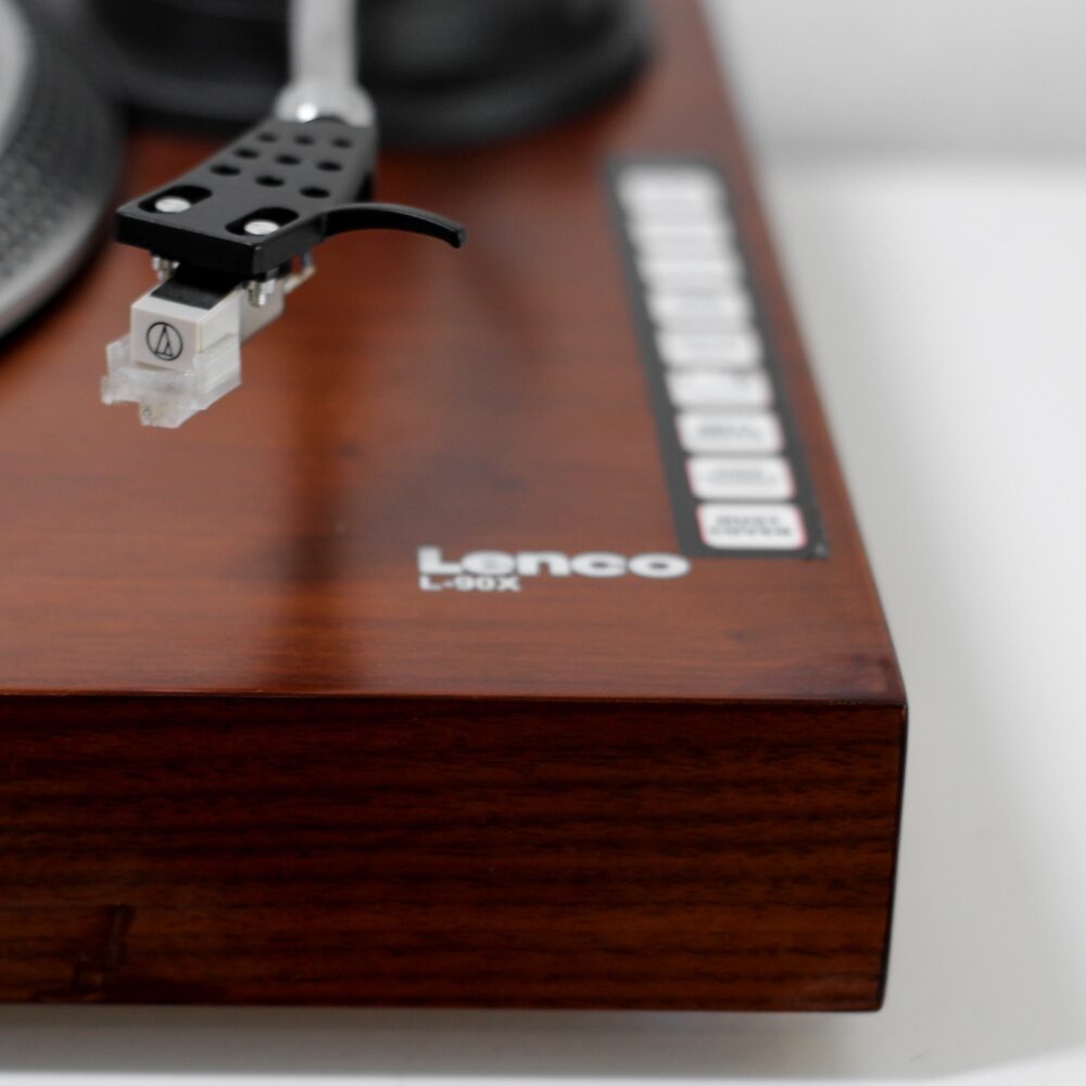 Lenco L-90X оснащений потужним опорним диском з алюмінію, на торцеву поверхню якого нанесені мітки. Опорний диск забезпечений гумовим килимком, який додатково демпфує розміщену на ньому платівку. У даній моделі використовується пасіковий привід від тихого двигуна, який забезпечений механічною розв’язкою від шасі. У програвачі використовується електронне перемикання швидкості обертання диска 33 або 45 об/хв, що підвищує зручність користування апаратом.