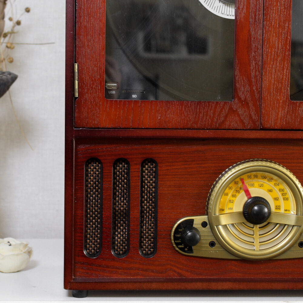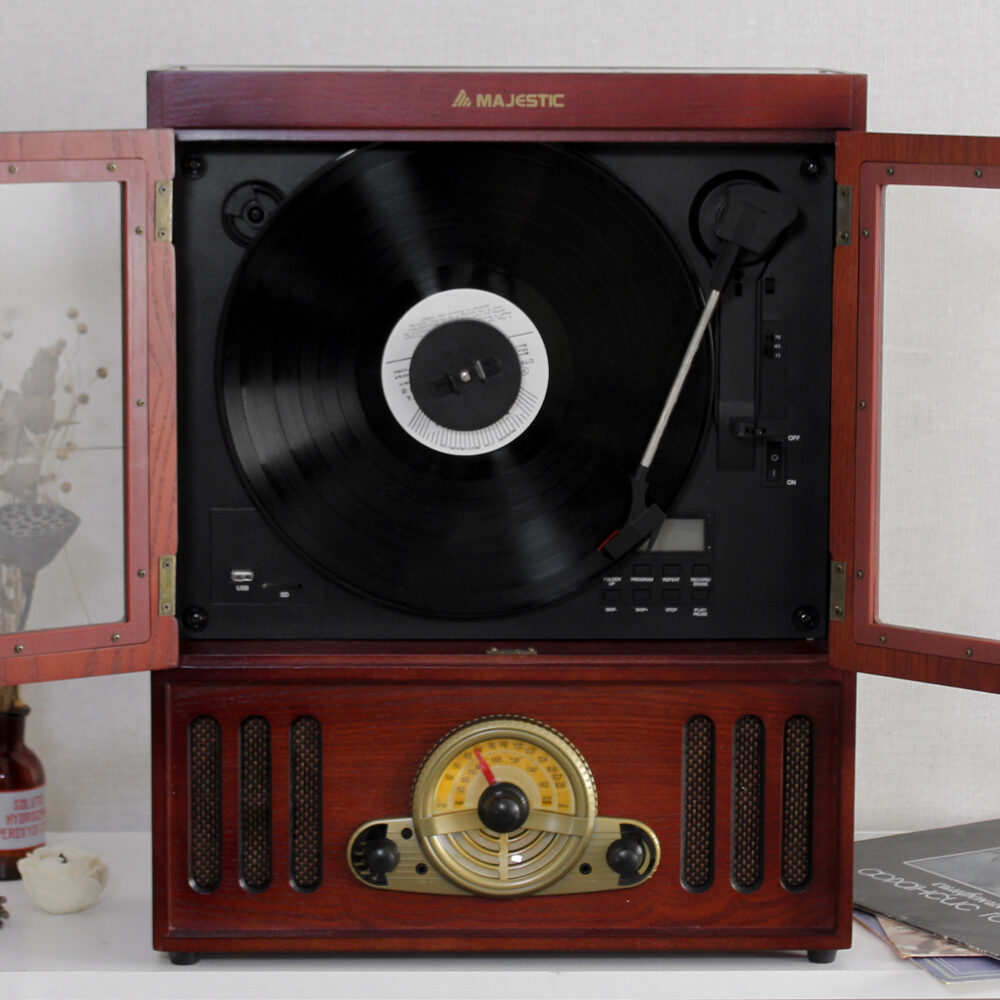 Majestic Vintage – це повноцінний музичний центр, який пов’язує минуле з майбутнім. Вінтажний дизайн – корпус з масиву дерева, тканинні динаміки, золота фурнітура…