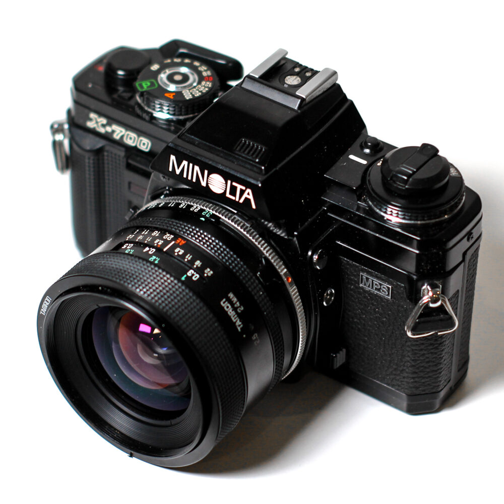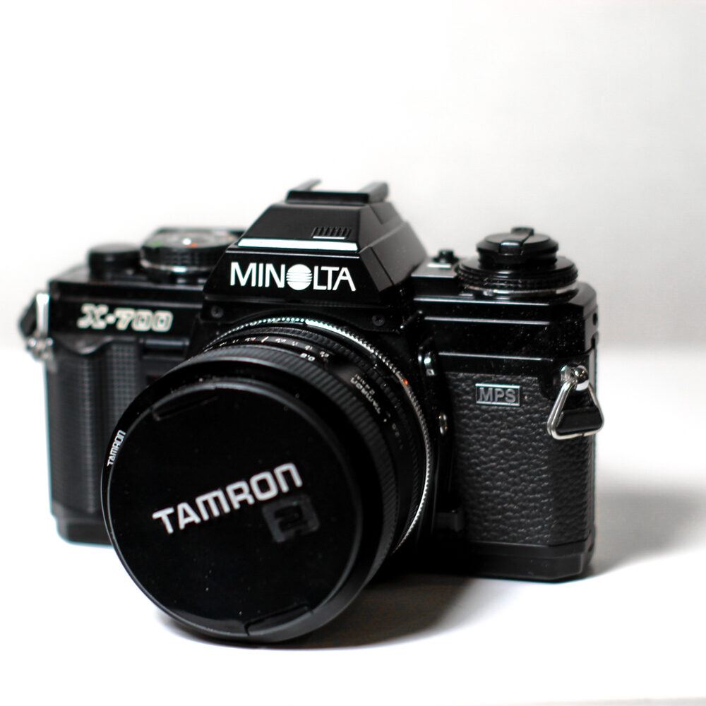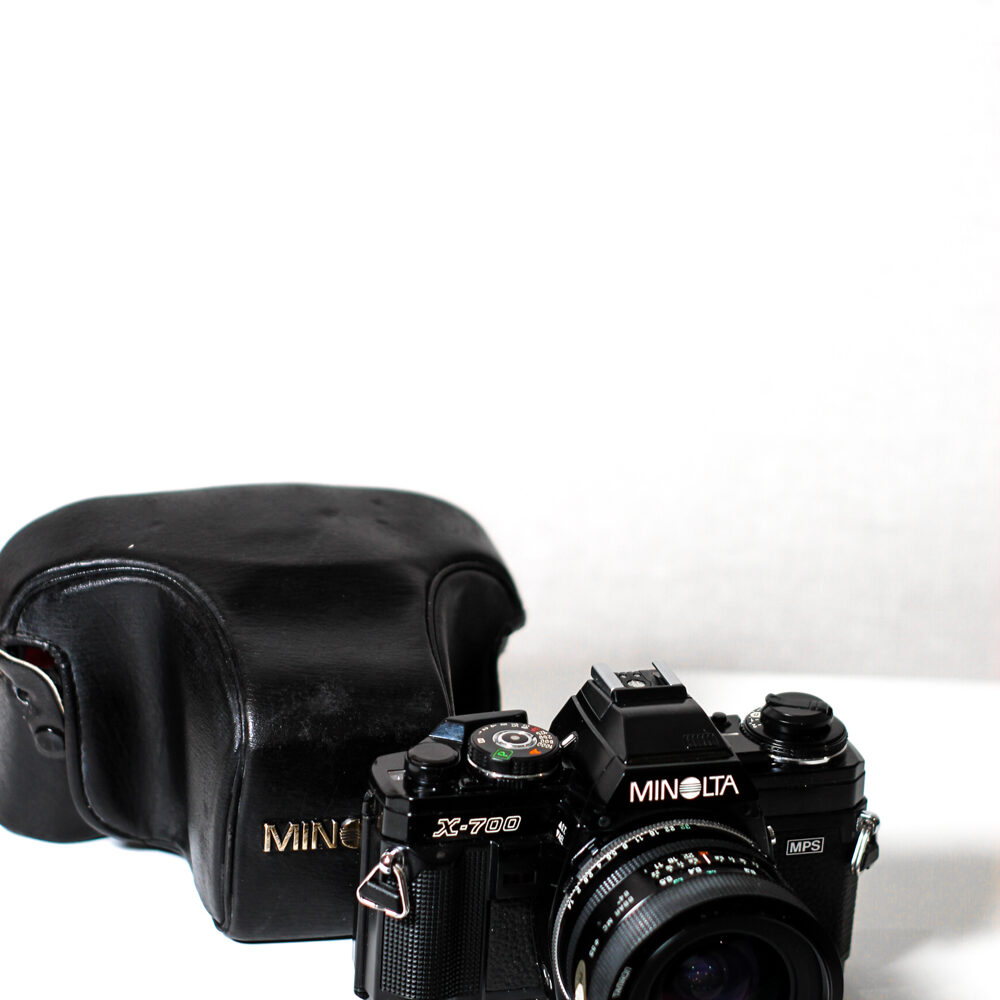 Minolta X‑700 — класичний 35 мм дзеркальний фотокамера, випущена в 1981 році, яка прекрасно поєднує простоту автоматичного режиму з можливістю ручного контролю. Ця модель ідеально підходить як ентузіастам, які хочуть почати роботу з плівковою фотографією, так і більш досвідченим користувачам, які цінують механіку й оптику. Унікальність цієї версії — режим програмної експозиції («P»), пріоритет діафрагми («A») і повністю вручну контрольований режим («M»), що дає гнучкість при різних стилях зйомки.