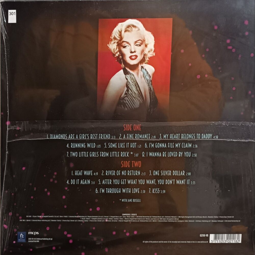 Культова платівка з піснями Мерилін Монро — ідеальне поєднання голлівудського шарму, джазу та класичного vocal pop 1950-х. Знакові композиції з фільмів Gentlemen Prefer Blondes, Some Like It Hot, River of No Return передають легкість, іронію та неповторну сексуальність її образу. Відмінний вибір для поціновувачів ретро-звучання та естетики Золотого Голлівуду.