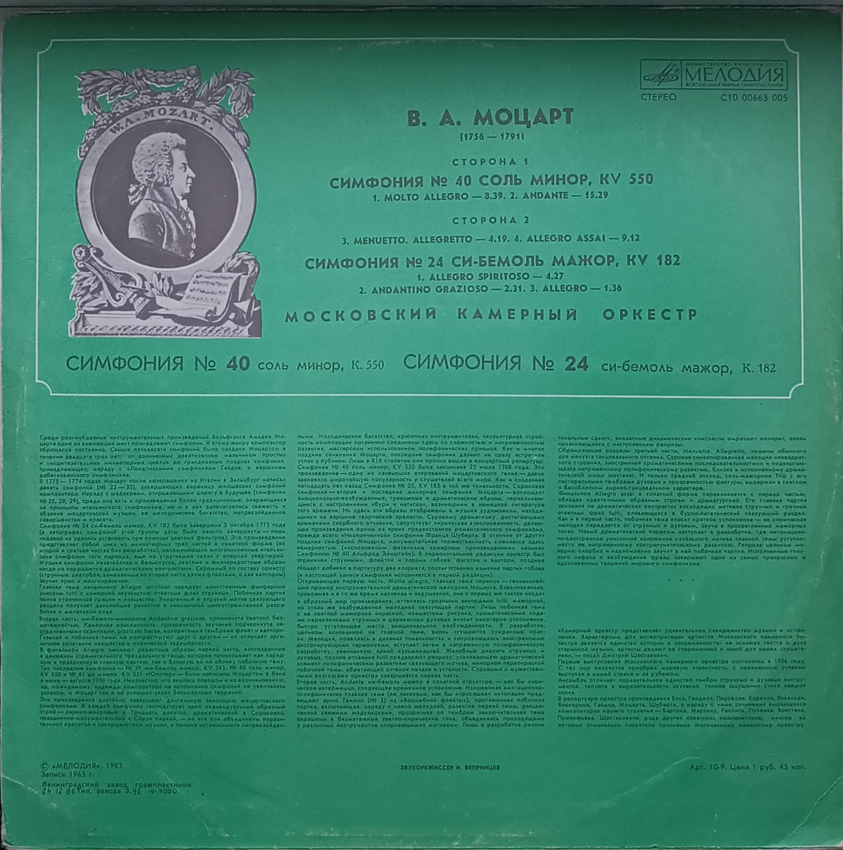 Запис виконаний Московським камерним оркестром. Видання фірми «Мелодія».