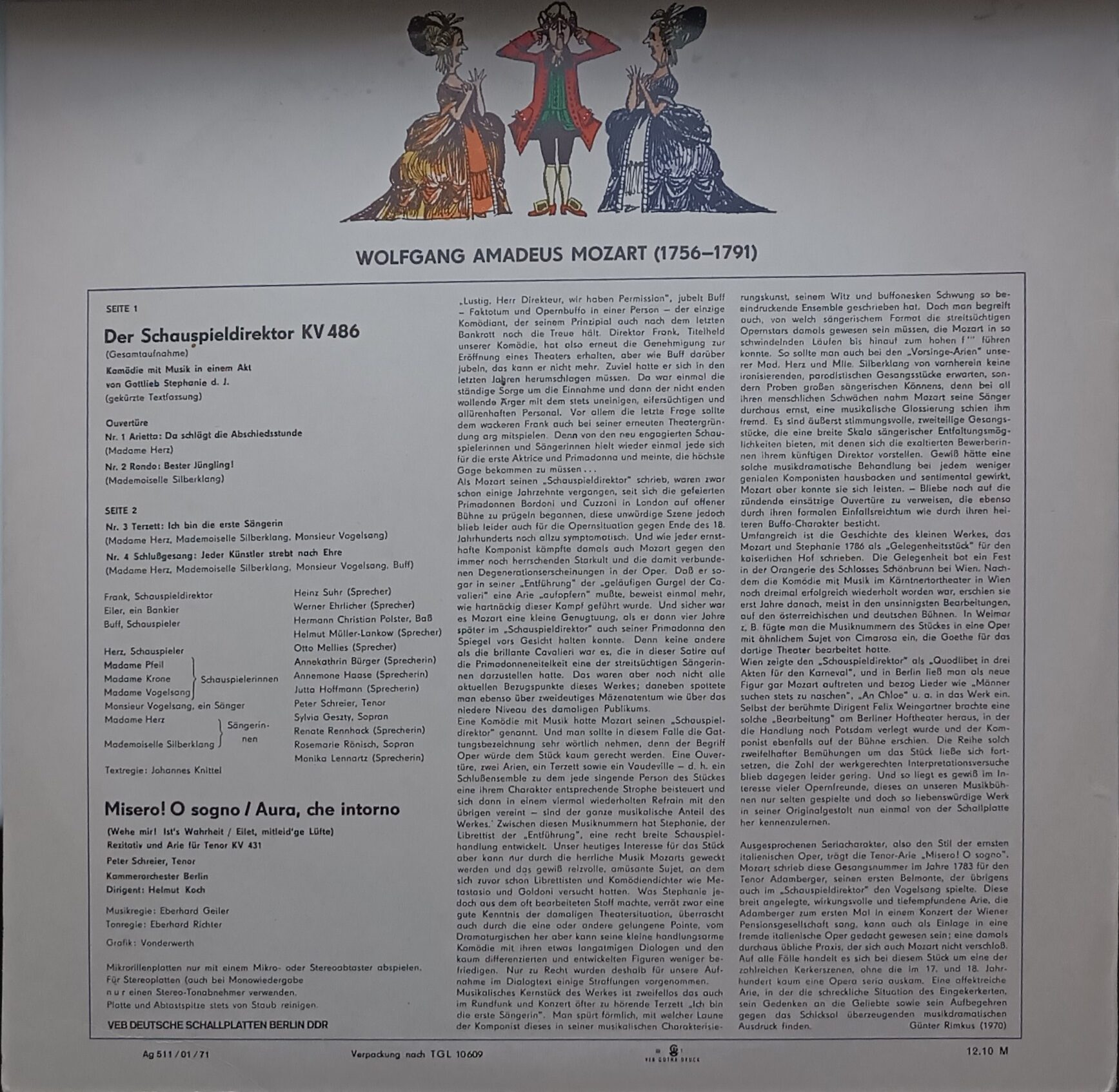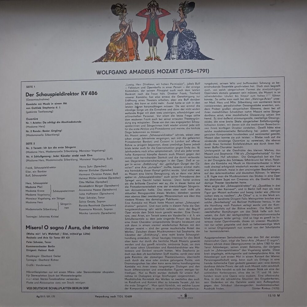 Запис у виконанні Kammerorchester Berlin під керуванням Helmut Koch звучить чисто й зібрано — класичний європейський стиль, який добре розкриває красу музики без зайвої «помпезності». Чудовий варіант для колекції вінтажної класики і для тих, хто хоче познайомитися з Моцартом у більш легкому, театральному форматі.