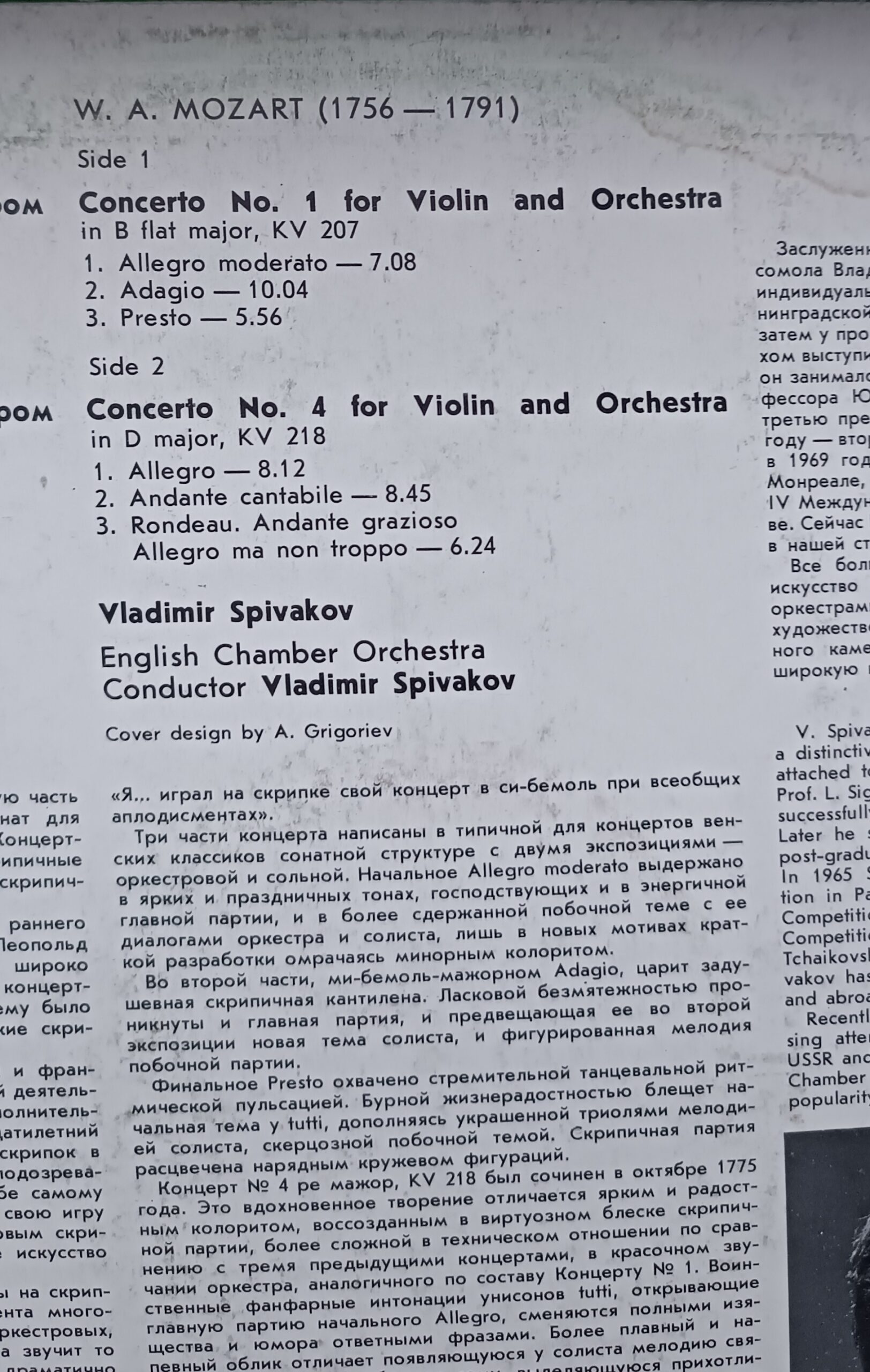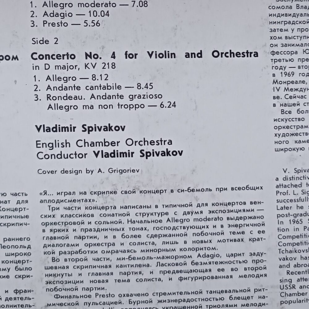 Side 2 — Concerto No. 4 for Violin and Orchestra in D major, KV 218