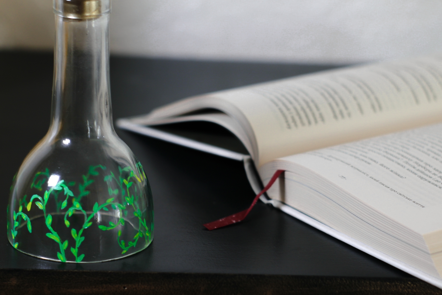 Стильний та атмосферний підсвічник, створений зі скляної пляшки, якій подаровано друге життя. Нижня частина має розпис ніжними білими гілочками, виконаний вручну спеціальними фарбами по склу. Кожен виріб є унікальним – жодного однакового малюнка.