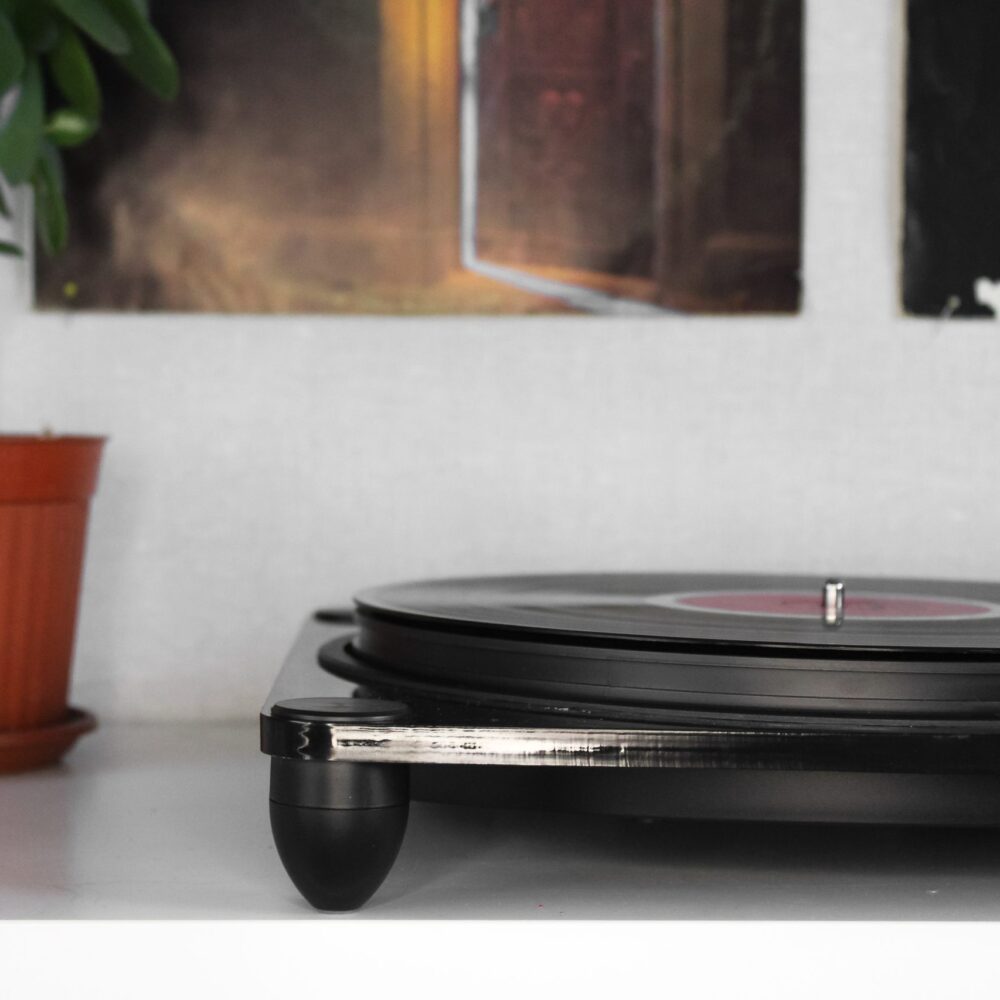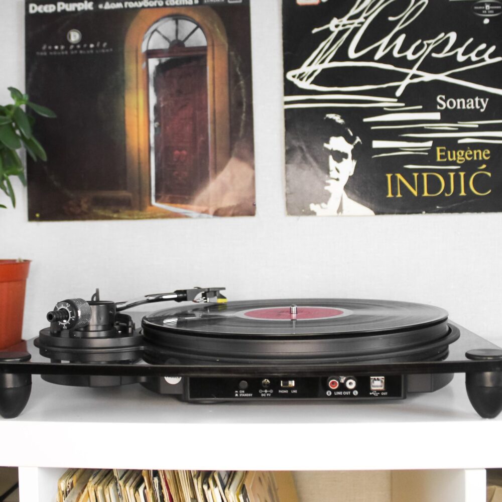 Нічого зайвого – ось, що можна сказати про цей програвач! Тільки найнеобхідніше для якісного саунду – голка, фірмовий сліпмат, регуляція натиску тонарма, безшумна ремінна передача, плавна регуляція швидкості програвання. Програвач налаштовується під смакові вподобання меломана.