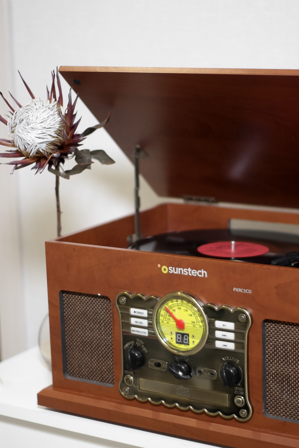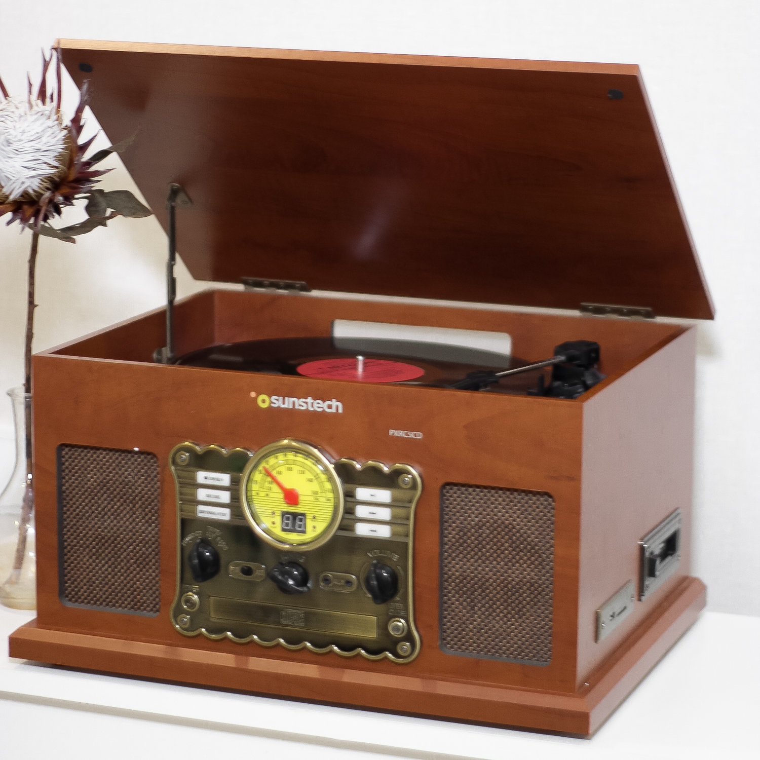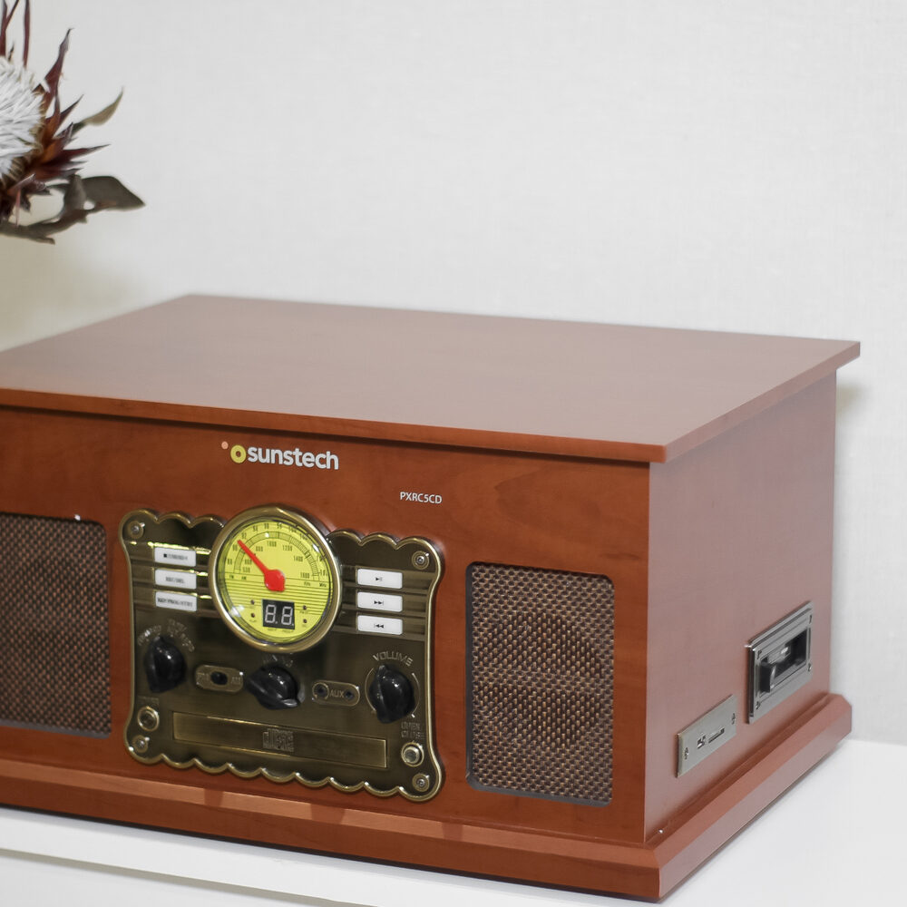 Sunstech Vintage – це повноцінний музичний центр, який пов’язує минуле з майбутнім. Вінтажний дизайн – корпус з масиву дерева, тканинні динаміки, золота фурнітура…