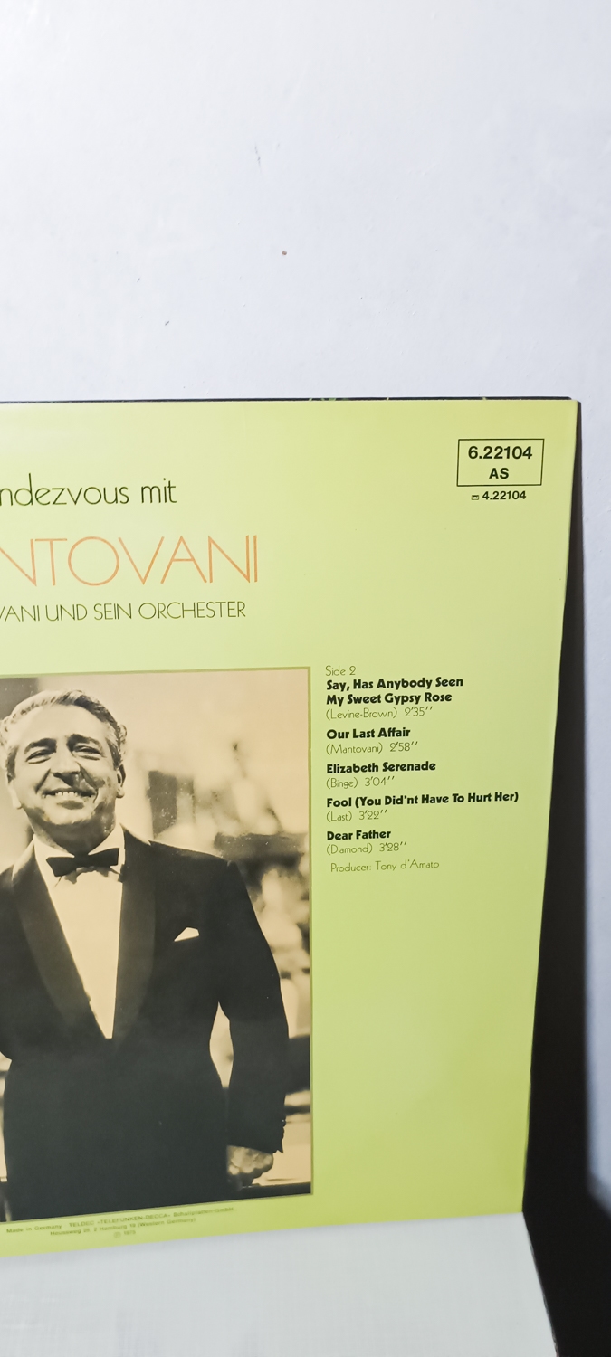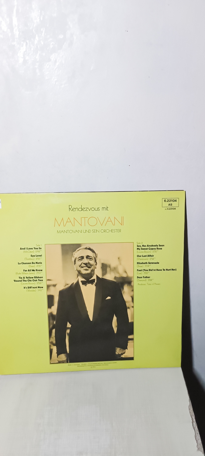 Аутентична вінтажна платівка з характерним оркестровим звучанням Mantovani, яка створює відчуття спокою, витонченості та класичного музичного смаку.