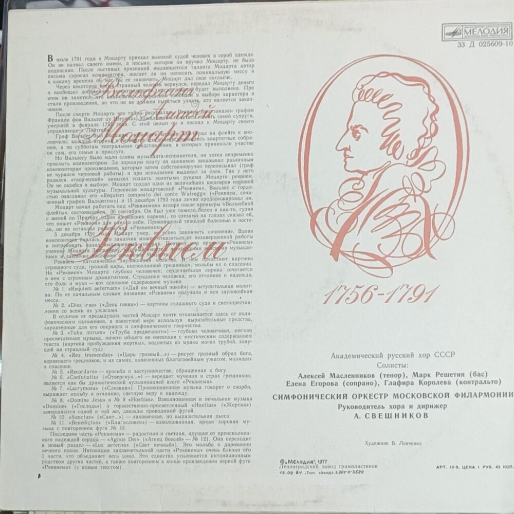 Вінілова платівка Вольфґанґ Амадей Моцарт (Mozart) – Реквієм requiem – NM