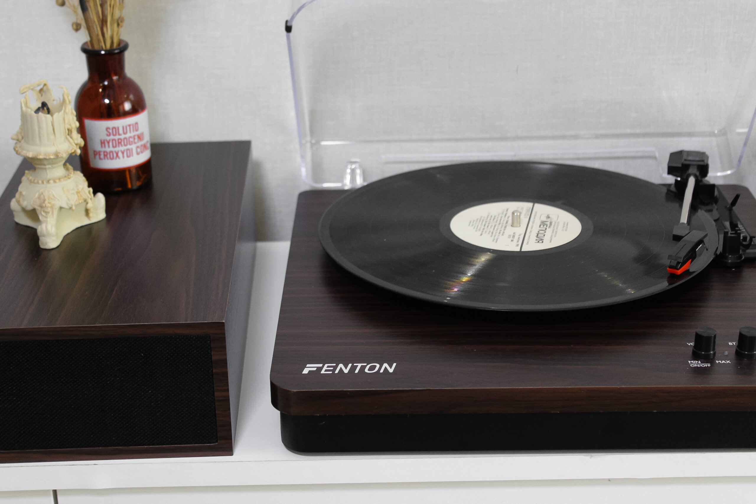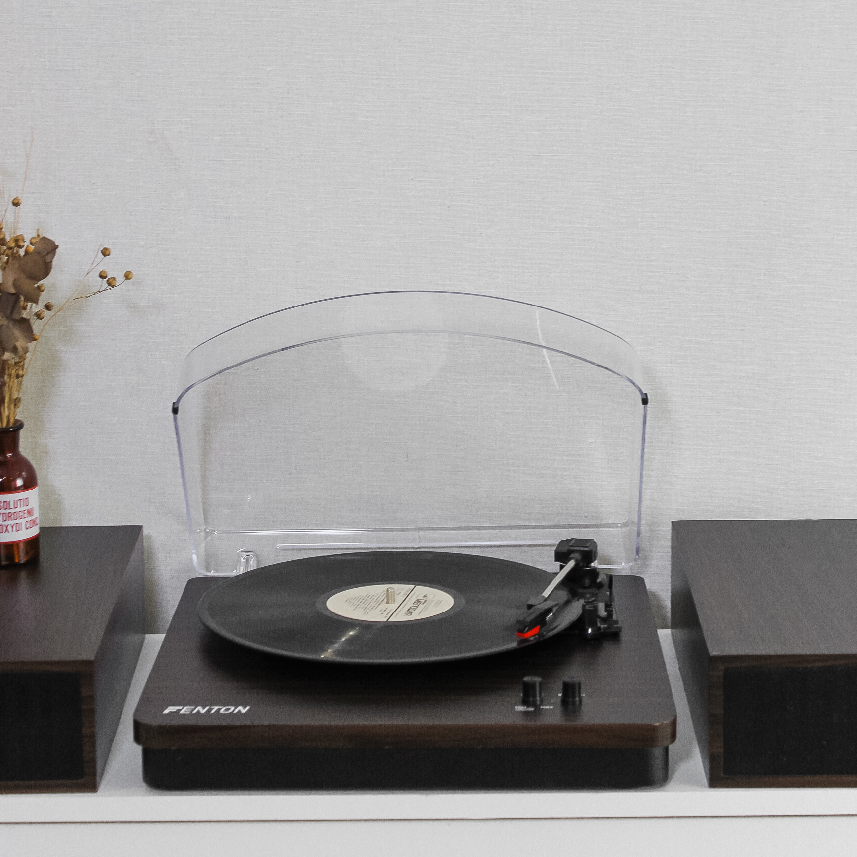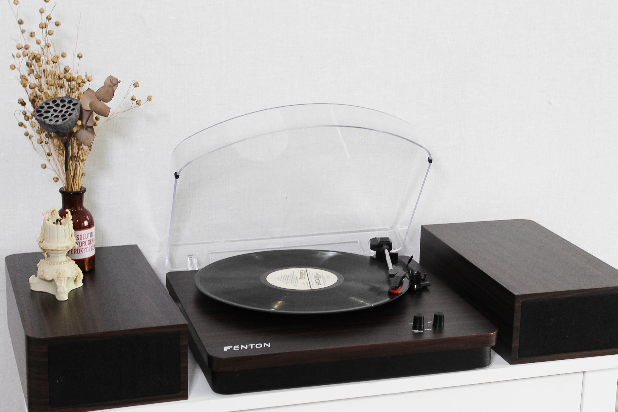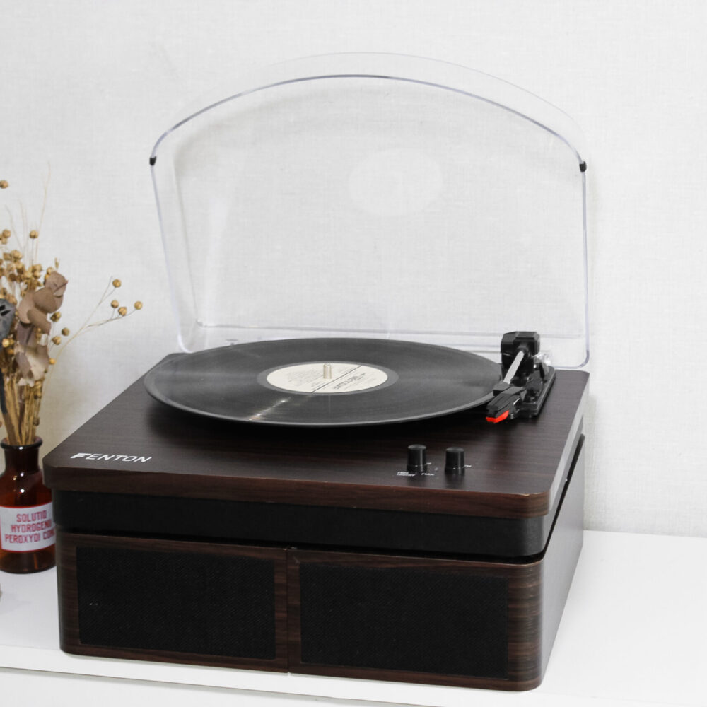 Оновлена версія моделі Fenton в оновленому кольорі. Фонокорректор, підсилювач  вже вбудовані, голка встановлена. Колонки входять в комплект