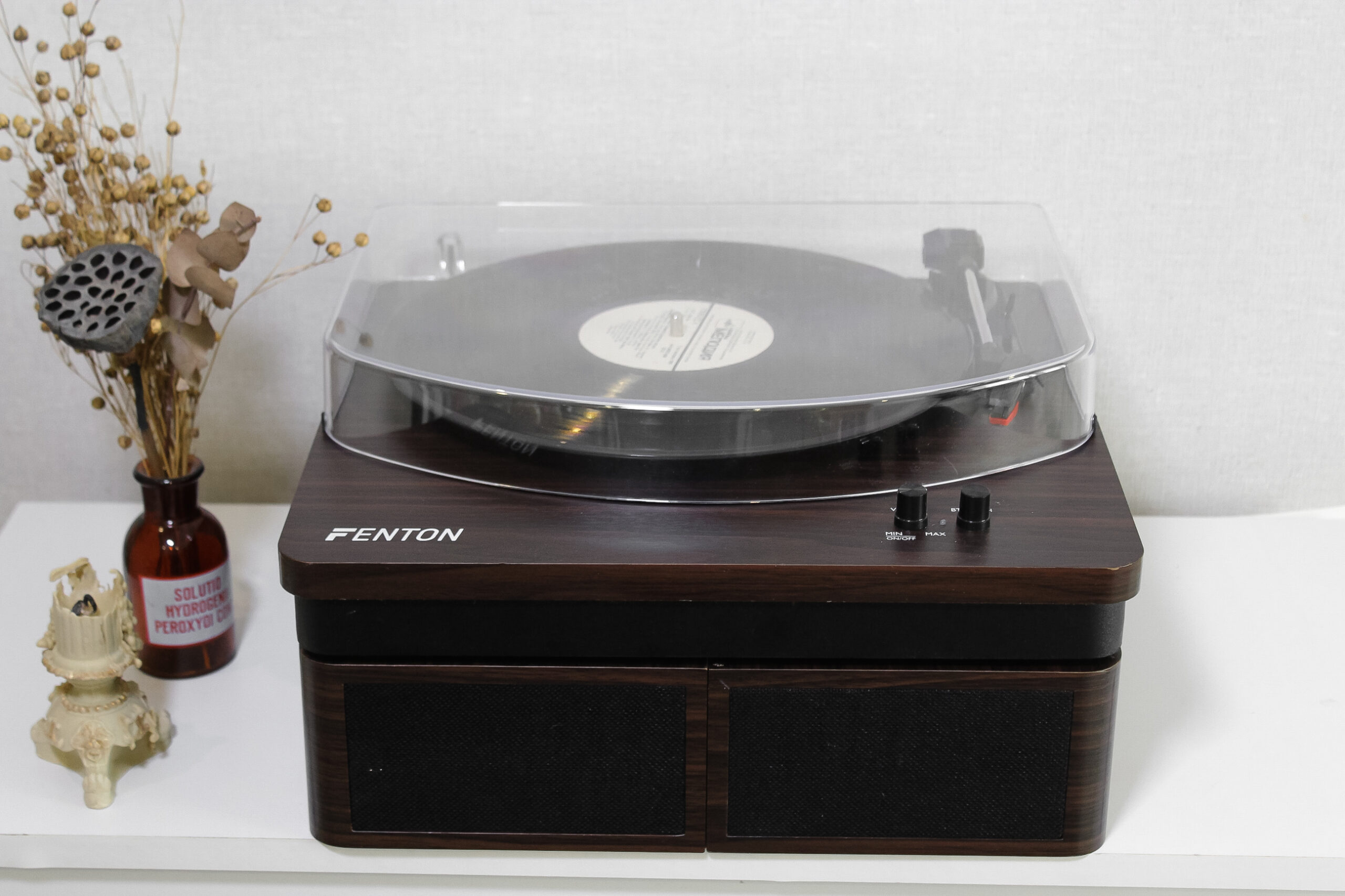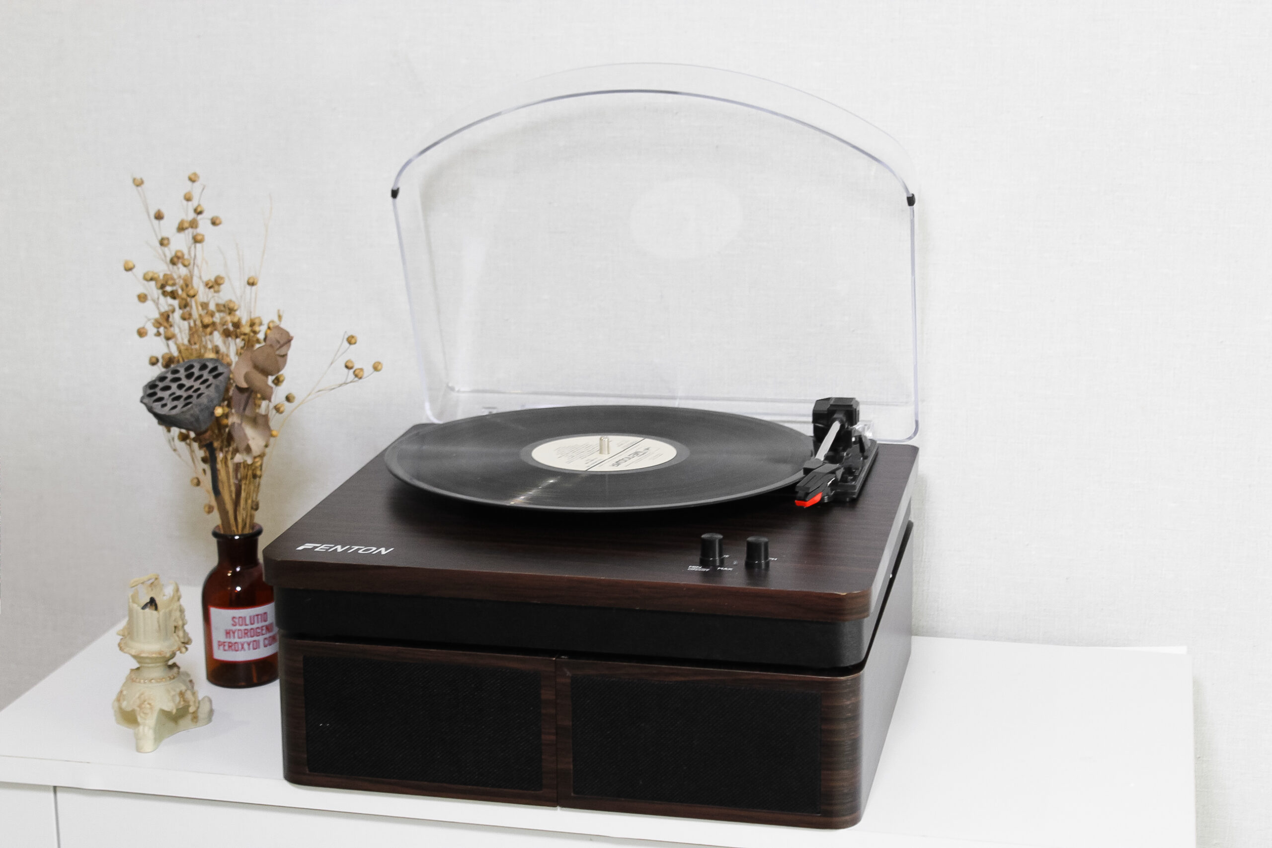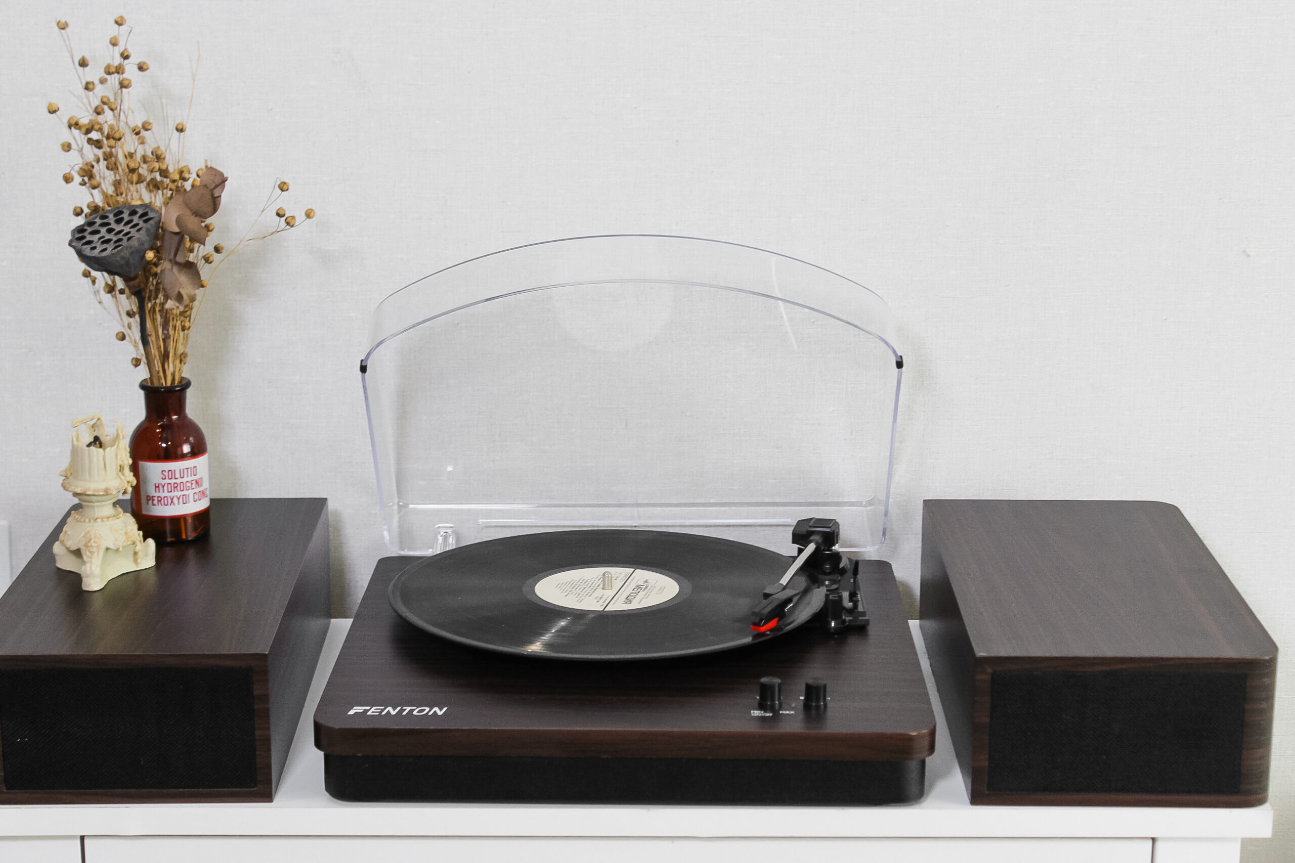 Оновлена версія моделі Fenton в оновленому кольорі. Фонокорректор, підсилювач  вже вбудовані, голка встановлена. Колонки входять в комплект