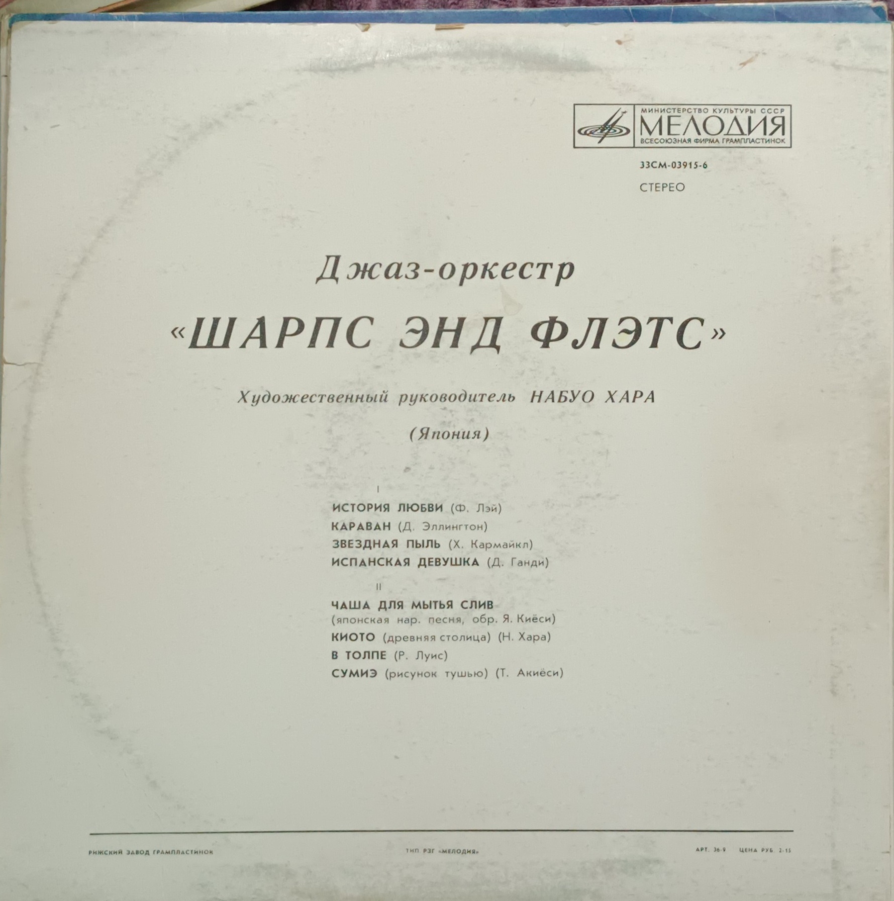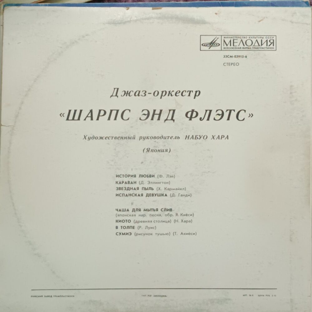 Ця платівка для поціновувачів джазу з яскравим “міжнародним” характером та колекціонерів вінтажних релізів лейблу «Мелодія». Тут звучить джаз-оркестр “Шарпс енд Флэтс” під керівництвом Набуо Хара (Японія): знайомі мелодії у джазових аранжуваннях та атмосферні композиції з японськими мотивами. Чудовий варіант для тих, хто любить оркестровий джаз, свінг і незвичні платівки з історією.