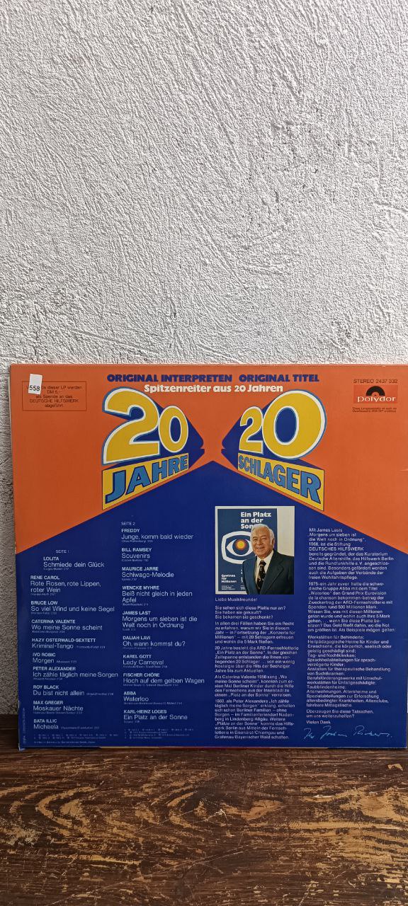 Ця збірка об’єднує найпопулярніші німецькі шлягери за 20 років. Тут зібрані як романтичні балади, так і запальні танцювальні мелодії, які свого часу звучали на радіо та улюблених телевізійних шоу. Платівка відображає розвиток жанру «Schlager» — від класичних мелодій до більш сучасних аранжувань, даруючи слухачеві атмосферу легкої, щирої та святкової музики.