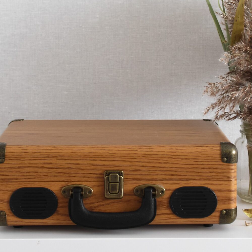 Ретро-валізка в корпусі під дерево з шикарною фурнітурою.