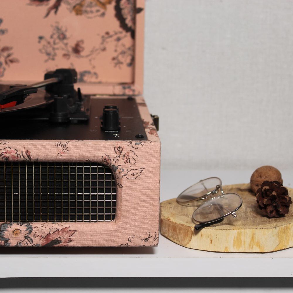 Програвач в ніжному кольорі з квітчастою обшивкою. Дуже ніжний та витончений!