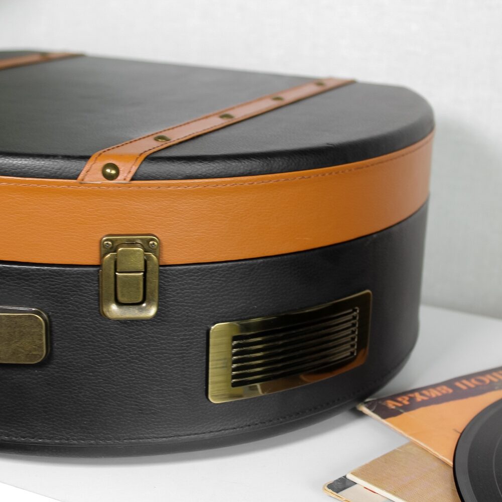 Програвач в чорній валізці, максимально забезпечений всім! Фонокорректор, підсилювач та колонки вже вбудовані, голка встановлена